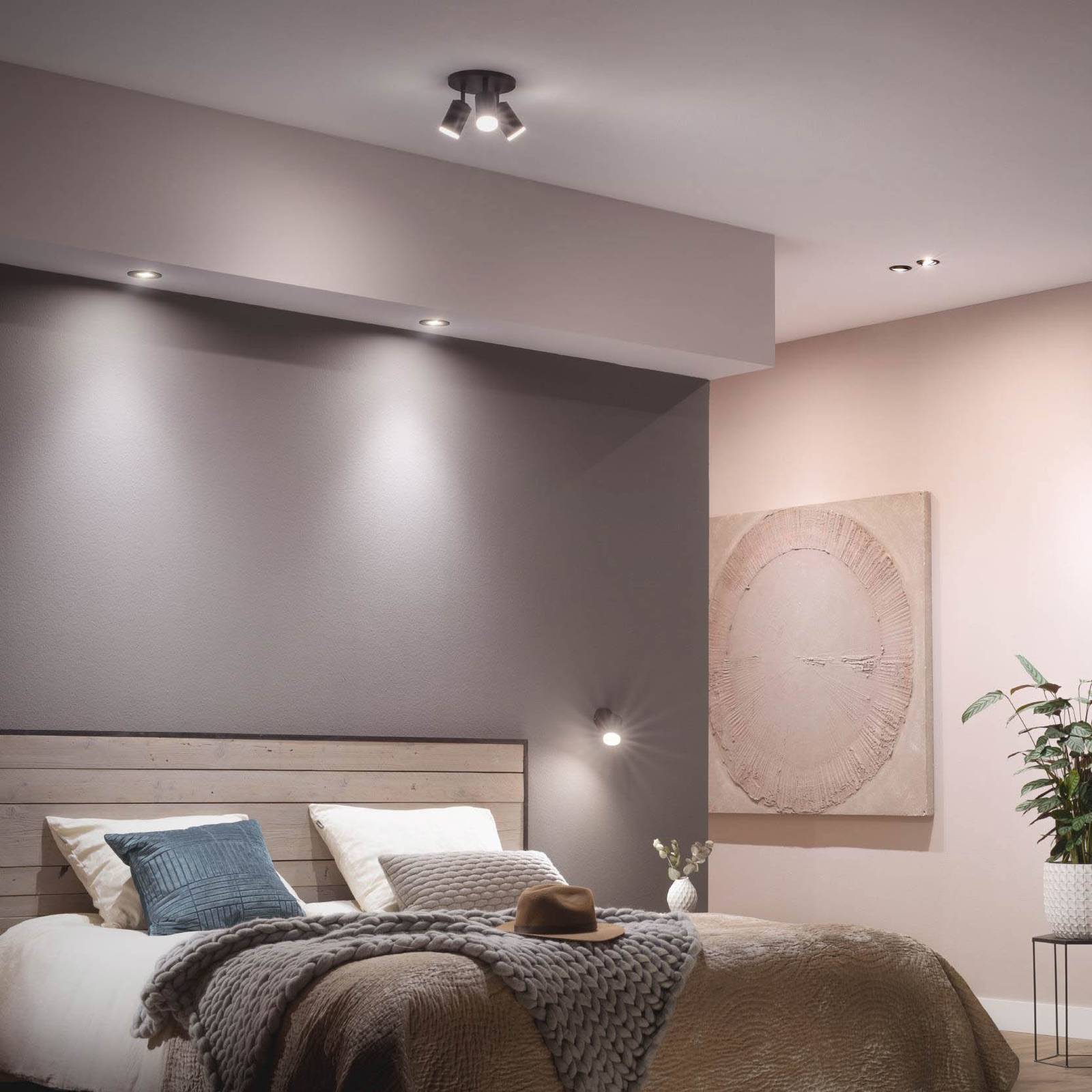 Ronde LED-inbouwspot Centura, Philips Hue White en Color Ambiance – aanstuurbaar via Bluetooth en Zigbee Centura loopt voorop, zowel qua uiterlijk als qua technologie. De LED-spot voor plafondmontage bestaat uit een rond kunststof frame en een zwenkbare spotkop. Deze laatste heeft een GU10 fitting, die is uitgerust met een Hue White en Color Ambiance lamp. De bedieningsmogelijkheden en verlichtingsopties van de lamp zijn het hoogtepunt van Centura. De spot kan via Bluetooth worden bediend met de Hue Bluetooth-app op de tablet of smartphone – zonder andere apparaten. Aangezien communicatie via ZigBee ook mogelijk is, kan Centura via een bridge en router in elk ZigBee-gebaseerd smart home systeem worden geïntegreerd. Als hiervoor Philips Hue is geselecteerd, is de Hue-dimschakelaar beschikbaar voor lokale bediening of de Hue-app voor afstandsbediening via smartphone. Centura kan ook worden geïntegreerd in Google Home, Amazon Alexa of Apple HomeKit voor spraakbediening. Met 16 miljoen kleuren en witnuances van 2.000 tot 6.500 Kelvin komt Centura tegemoet aan elke wens en elke situatie. De instellingen kunnen worden geselecteerd volgens vooraf gedefinieerde lichtrecepten, vrij worden samengesteld en, met ZigBee-integratie, bijvoorbeeld worden ingesteld op basis van de dagelijkse routine of aanwezigheid. Technische gegevens: – Kleurtemperatuur van het witte licht instelbaar van warm wit (2.000 K) tot daglicht (6.500 K) – 16 miljoen kleuren – Bluetooth-bereik binnenshuis ca. 10 m Speciale kenmerken / compatibiliteit: – Bedienbaar met de Hue-dimschakelaar (zie accessoires). – Bedienbaar met bijpassende Hue app en Hue Bluetooth app – compatibel met bestaande Philips Hue-systemen en andere ZigBee-gebaseerde systemen zoals van Innogy, Bosch, Telekom (Magenta) en Busch-Jäger – Spraakbesturing mogelijk met Amazon Alexa, Apple HomeKit (Siri) en Google Assistant – Dimbaar via app, stemcommando en dimschakelaar – intelligente verlichtingsbediening optie a: ZigBee-integratie via bridge en router, zoals de Philips Hue Bridge (zie accessoires); dit maakt bediening ter plaatse of onderweg mogelijk via de Hue-app (gratis voor Android en iOS) of ter plaatse via spraakbesturing via Amazon Alexa, Apple HomeKit (Siri) en Google Assistant. – Intelligente verlichtingsbediening optie b: Directe lokale bediening via Bluetooth met behulp van de gratis Hue Bluetooth-app; hiervoor is een smartphone of tablet nodig die gebruikmaakt van Android 7 of iOS 11 of hoger en Bluetooth Low Energy (BLE) 4.0 of hoger. Een router, WLAN of dataverbinding is niet nodig. Bij gebruik van meer dan tien lampen wordt het gebruik van een brug aanbevolen. Een lamp kan verbindingen met maximaal 15 smartphones/tablets opslaan; de individuele instellingen worden individueel toegewezen.