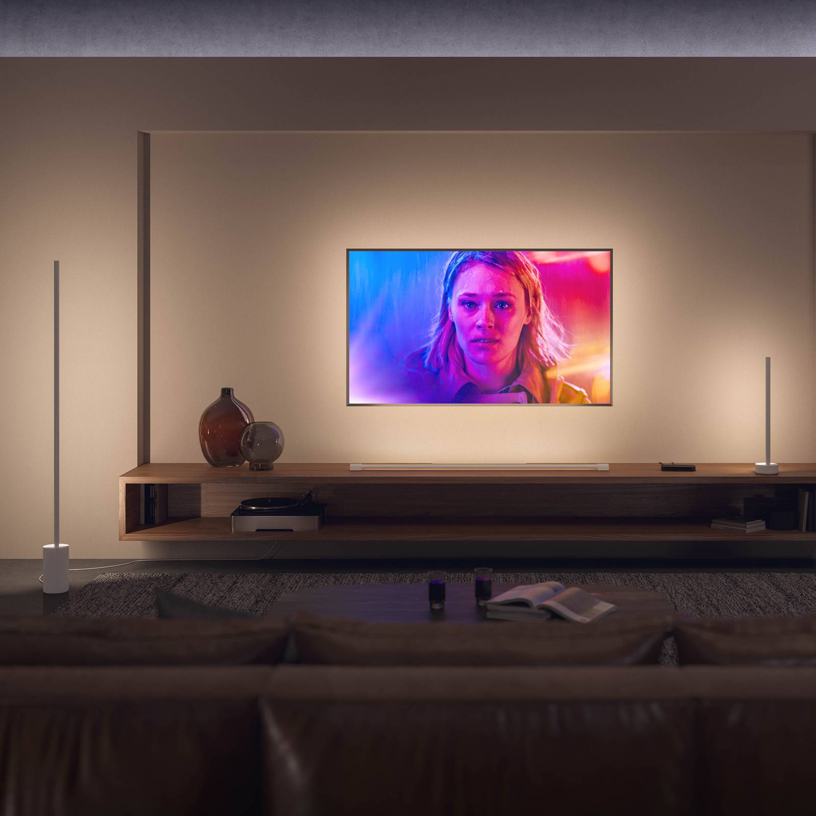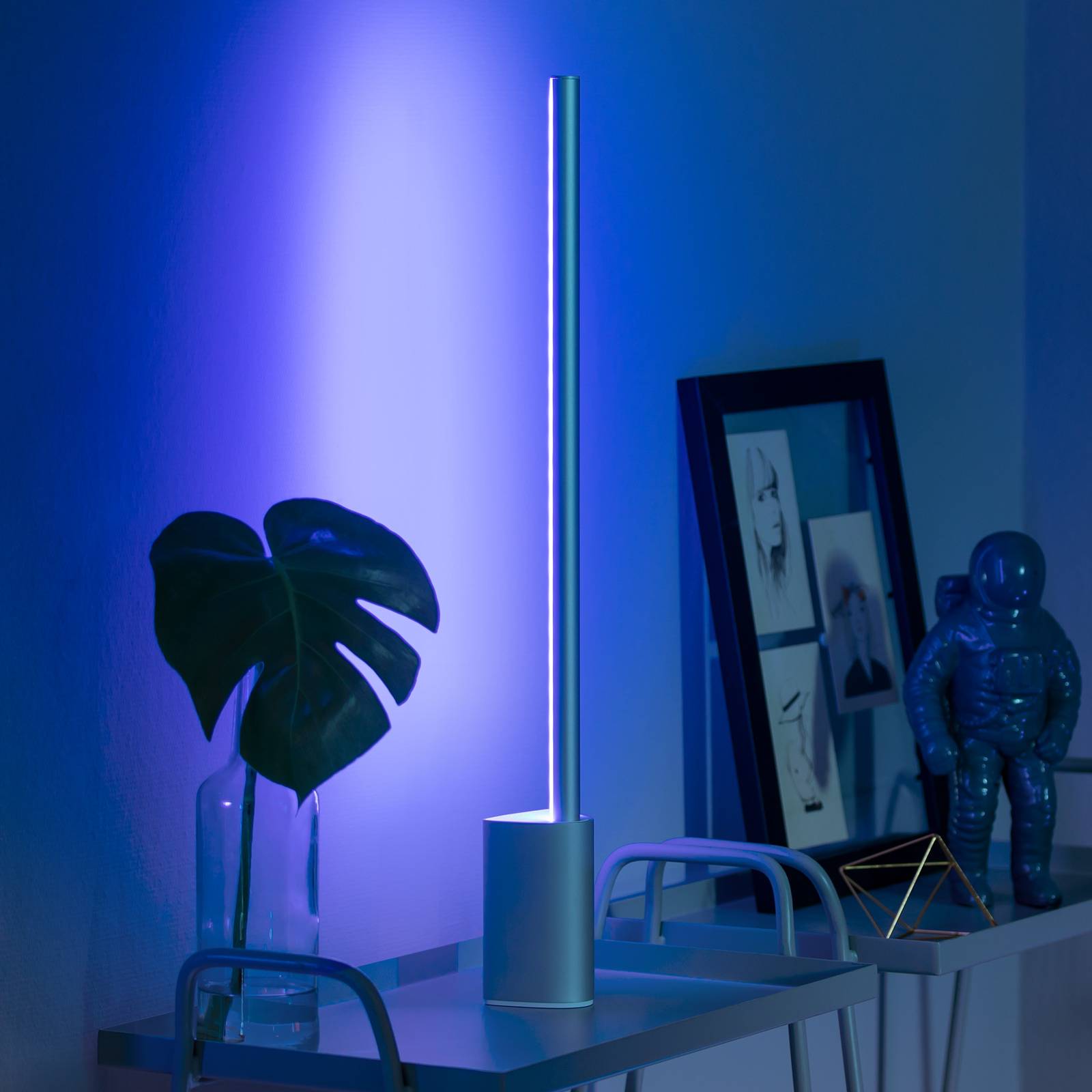 Veelkleurige verlichtingseffecten dankzij de Philips Hue Gradient-technologie – Signe LED-tafellamp De slanke en minimalistische vormgeving van de Philips Hue Signe LED-tafellamp met geavanceerde gradiënttechnologie is volledig gericht op het lichteffect. Signe maakt vooral een gelijkmatige indirecte lichtverdeling over de wand of ook direct in de ruimte mogelijk. De armatuur uit de Philips Hue Gradient Ambiance-serie creëert een speciale sfeer in elke woonruimte. Alle Gradient-producten kunnen statische en dynamische kleurverlopen creëren. Daarbij worden meerdere kleuren tegelijk gegenereerd via de hoogte van de tafellamp, die individueel kan worden ingesteld. Zo kan de LED-tafellamp Signe roze schijnen aan de onderkant, rood in het midden en geel aan de bovenkant, waardoor een indrukwekkende lichtsfeer wordt gecreëerd. Speciale kenmerken / compatibiliteit: – bedienbaar met de Hue-dimschakelaar (zie accessoires) – Bedienbaar met bijpassende Hue app en Hue Bluetooth app – Compatibel met bestaande Philips Hue-systemen en andere ZigBee-gebaseerde systemen zoals van Innogy, Bosch, Telekom (Magenta) en Busch-Jäger – Spraakbesturing mogelijk met Amazon Alexa, Apple HomeKit (Siri) en Google Assistant – Dimbaar via app, spraakbesturing en Hue-dimschakelaar – Kleurverlopen van 16 miljoen kleuren en wit licht van hoge kwaliteit – Plug-in voeding inbegrepen – Intelligente lichtregeling via ZigBee: integratie via bridge, bijvoorbeeld de Philips Hue Bridge en router in een bestaand smart home-systeem – Intelligente lichtregeling via Bluetooth: Directe bediening met smartphone/tablet via Bluetooth en gratis Hue Bluetooth-app. Het gebruik van een brug wordt aanbevolen voor meer dan tien lampen.