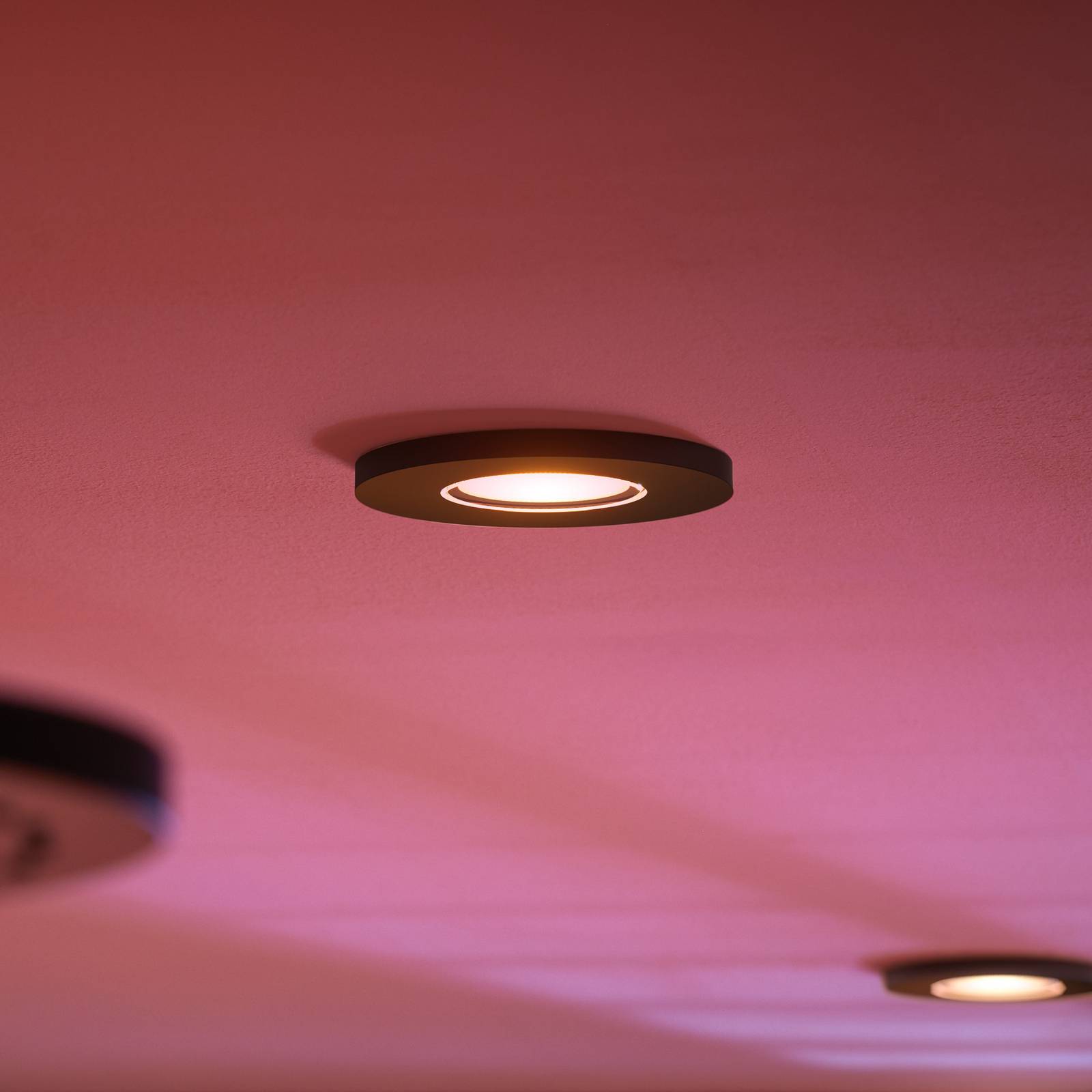 Zwarte Philips Hue LED inbouwspot Xamento biedt talrijke instelmogelijkheden Of hij nu in de woonkamer, slaapkamer of badkamer wordt geïnstalleerd, Xamento zorgt voor sfeervol en altijd passend licht in elke woonruimte. De ronde inbouwspot heeft een zwart frame en is eenvoudig gehouden, maar de bedieningsopties zijn over de hele linie indrukwekkend. Basisfuncties kunnen bijvoorbeeld worden uitgevoerd met de bijpassende Hue-dimschakelaar (zie accessoires). Deze omvatten aan, uit of dimmen, evenals vier vooraf ingestelde lichtscènes. Dankzij Bluetooth is bediening ook direct mogelijk met een smartphone/tablet en de gratis App Hue Bluetooth, wat nog meer mogelijkheden biedt. Door de inbouwlamp te integreren in een bestaand, op ZigBee gebaseerd Home smart home systeem, krijg je toegang tot alle functies die Xamento te bieden heeft. Naast spraakbesturing is het ook mogelijk om lichtkleuren te veranderen, te schakelen volgens tijdschema’s, groepen te vormen met andere lampen en apparaten en zelfs toegang te krijgen terwijl je onderweg bent. Speciale kenmerken / compatibiliteit – bedienbaar met de Hue dimschakelaar (zie accessoires) – dimbaar (via app of dimschakelaar) – bedienbaar via ZigBee of Bluetooth en geschikte app – stembediening mogelijk met Amazon Alexa, Apple HomeKit (Siri) en Google Assistant – compatibel met andere op ZigBee gebaseerde systemen naast Philips Hue, zoals Innogy, Bosch, Magenta (Telekom) en Busch – lichtbediening via Bluetooth – tot tien lampen en lampen kunnen direct worden bediend met de gratis Hue Bluetooth app zonder extra accessoires. Functies: aan, uit, dimmen, vooraf ingestelde lichtscènes – Lichtbediening via ZigBee – Integratie via bridge en router in een SMART+ Home, zoals Philips Hue (zie accessoires voor bridge). Die een breed scala aan functies mogelijk maakt, waaronder afstandsbediening, het maken en gebruiken van schema’s en het programmeren van individuele scènes en automatiseringen.
