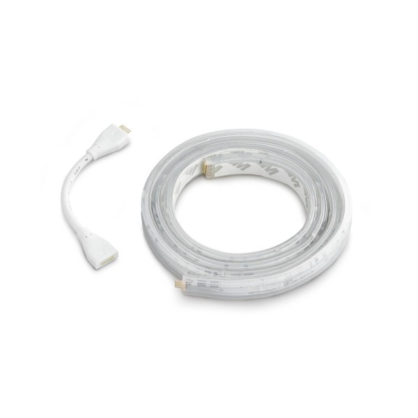 Philips Hue – 1m verlenging voor LightStrip Plus – Wit en Color Ambiance Of u nu een sfeervolle RGB-kleurwisseling wilt of wit licht voor werken, lezen of leren, met de Philips Hue LightStrip Plus kunt u uw eigen individuele lichtsituatie creëren uit 16 miljoen beschikbare kleuren. De één meter lange verlenging kan eenvoudig worden bevestigd aan de LightStrip Plus 2 m voet (zie accessoires) door de uiteinden eenvoudig in elkaar te steken. Het Stripsysteem kan worden verlengd tot 10 meter, waardoor ook langere ruimtes in de woonkamer naadloos kunnen worden verlicht. Met 950 lumen biedt de Strip een enorme helderheid – vooral in combinatie met andere elementen van dit systeem. De talrijke mogelijkheden van een individuele lichtsturing maken een ongekende lichtbeleving in uw eigen vier muren mogelijk. De huisverlichting kan worden ontworpen, gewijzigd en uitgebreid naar persoonlijke voorkeur. De lichte kleur kan op elk gewenst moment worden geselecteerd, afhankelijk van de stemming, met behulp van de Hue App. Het is ook mogelijk om het licht te bedienen zonder extra accessoires via de Bluetooth-app. De LightStrip Plus-verlenging is niet compatibel met de vorige LightStrips zonder Bluetooth-technologie omdat er nieuwe connectoren worden gebruikt. Speciale kenmerken / compatibiliteit: – de LightStrip Plus 2 m voet is nodig voor de bediening (zie toebehoren) – kan elke 33 cm worden ingekort – dimbaar – bestuurbaar met het bestaande Philips-Hue systeem – bestuurbaar met bijpassende Hue app en Hue Bluetooth app – compatibel met op ZigBee gebaseerde systemen zoals Innogy, Bosch, Magenta (Telekom) en Busch-Jäger – intelligente verlichtingsbesturing Optie a: ZigBee-integratie via brug en router, zoals de Philips Hue Bridge (zie accessoires); dit maakt lokale of externe bediening mogelijk via de Hue-app en de optie van spraakbesturing via Amazon Alexa, Apple HomeKit (Siri) en Google Assistant – intelligente lichtregeling Optie b: Directe aansturing ter plaatse via Bluetooth met gratis Hue Bluetooth-app. Als er meer dan tien lampen worden gebruikt binnen de Bluetooth-besturing, wordt het gebruik van een brug aanbevolen.