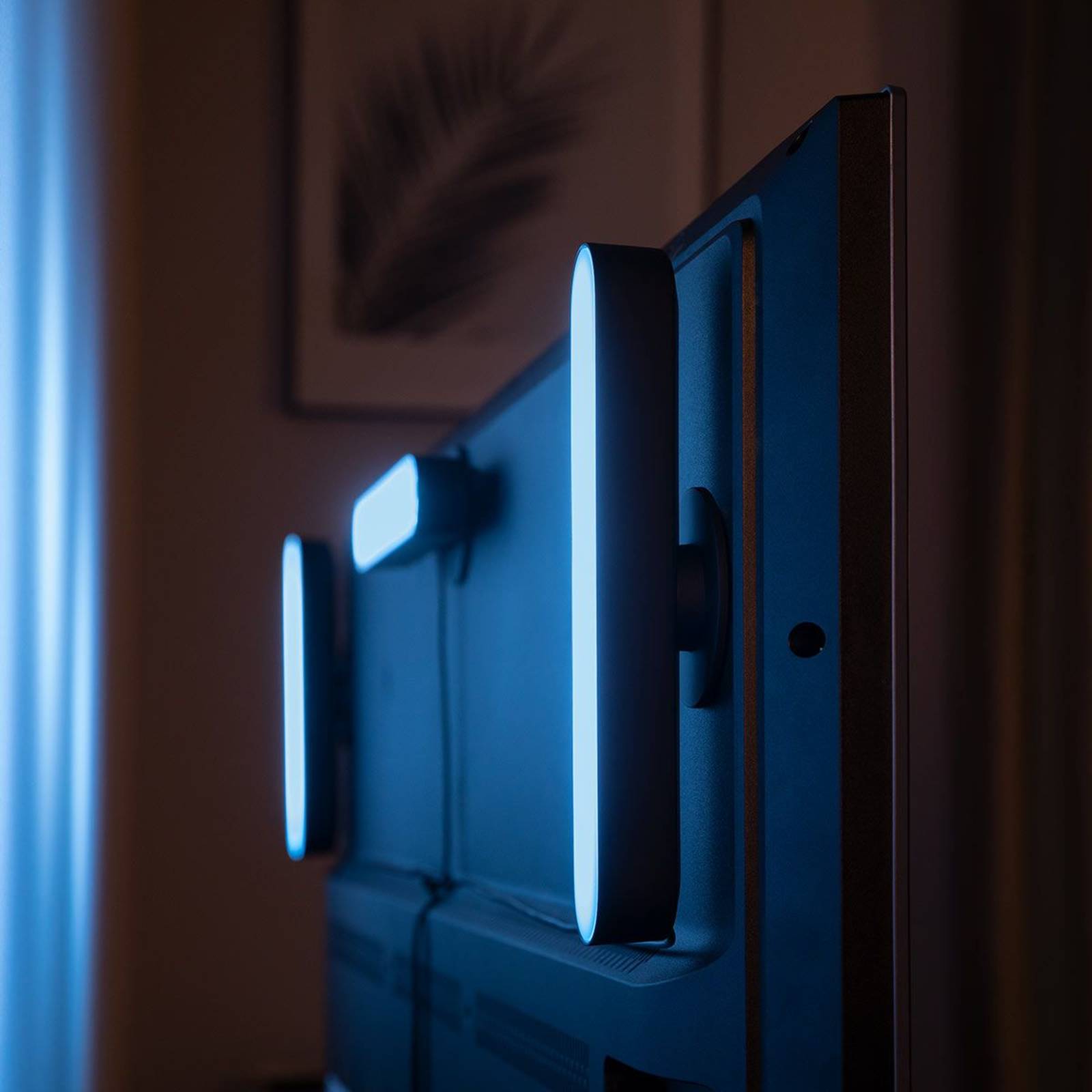Smart-Home-capabele Philips Hue White and Color Ambiance Play Lightbar – Entertainmentervaringen voor thuis! Deze LED tafellamp is afkomstig uit de slimme Philips Hue Play-reeks en maakt fascinerende lichtervaringen bij u thuis mogelijk. Met haar meer dan 16 miljoen verschillende lichtkleuren zorgt de lamp voor een perfecte kleur-synchronisatie naar muziek, films of videogames (via Hue Sync), zodat er fascinerende entertainmentervaringen en sfeer ontstaan. De lineaire behuizing zorgt hierbij voor een optimaal vlakke lichtverdeling – gestart van de vloer via de wand tot aan het plafond. Verder is de lamp Play variabel in montage (horizontaal, verticaal of rechtstreeks op de televisie of pc gemonteerd), zodat een aangenaam indirect en verblindingsvrij lichteffect wordt bereikt. Technische gegevens/compatibiliteit: – compact ontwerp – met White & Color sfeerfunctie – perfecte synchronisatie naar muziek, films of videogames – compatibel met Philips Hue Sync. – uitbreidbaar door extra lampen en 5 m verlengkabel (zie accessoires) – incl. stroomkabel Opmerking: Voor de koppeling in uw eigen Smart-Home-systeem is de Hue-bridge nodig (zie accessoires)