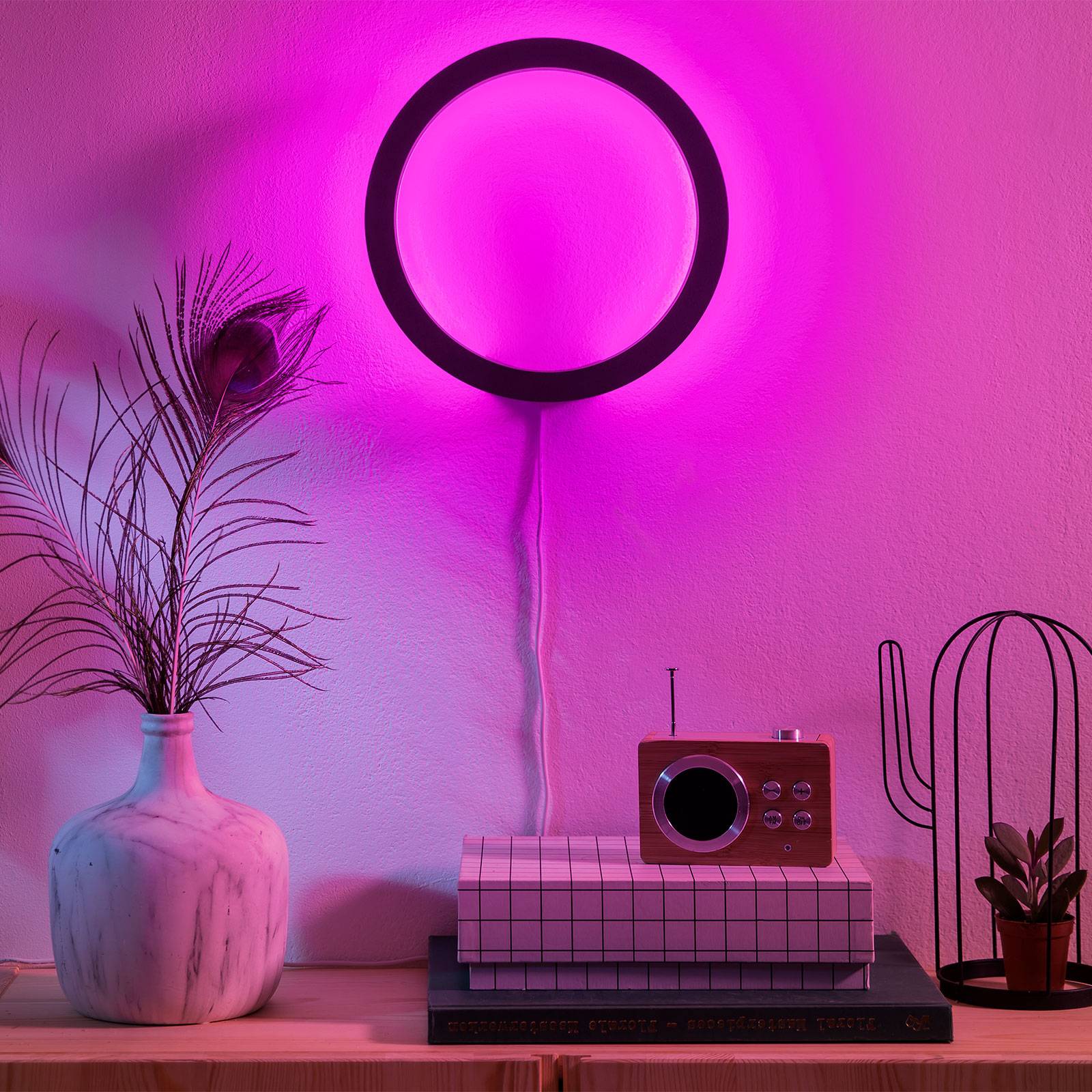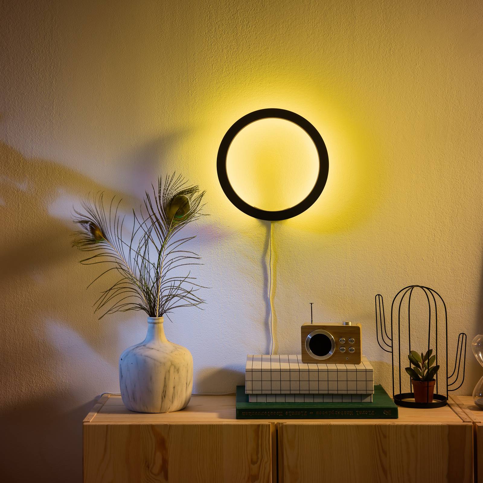 Indirect, kleurrijk en slim regelbaar licht – LED-wandlamp met Bluetooth en ZigBee-functie Philips Hue Sana Voor sfeervolle verlichting in de moderne woonruimte is de LED wandlamp Sana gemaakt voor u. Hij is ontworpen als een eenvoudige ring van aluminium, die aan de achterzijde is uitgerust met witte en gekleurde Ambiance-LED’s. Deze geven licht in een wit spectrum van 2.000 tot 6.500 Kelvin en in 16 miljoen kleurtonen, dat indirect in de kamer valt door de muur te verlichten. Sana kan via Bluetooth worden bediend met alleen een smartphone of tablet en de juiste Hue Bluetooth-app. De Hue-dimschakelaar (zie accessoires) maakt ook directe bediening mogelijk. Aangezien Sana ook ZigBee-compatibel is, kan de wandlamp worden geïntegreerd in Philips Hue en elk ander op ZigBee gebaseerd smart home-systeem met een overeenkomstige bridge en router. Dit maakt integratie in scènes met andere slimme interieurbouwstenen, stembediening via Google Home, Amazon Alexa en Apple HomeKit, maar ook afstandsbediening via smartphone-app – voor bijvoorbeeld aanwezigheidssimulatie – mogelijk. Technische gegevens: – Kleurtemperatuur van het witte licht instelbaar van warm wit (2.000 K) tot daglicht (6.500 K) – 16 miljoen kleuren – Bluetooth-bereik binnenshuis ca. 10 m Speciale kenmerken / compatibiliteit: – Bedienbaar met de Hue-dimschakelaar (zie accessoires). – Bedienbaar met bijpassende Hue app en Hue Bluetooth app – compatibel met bestaande Philips Hue-systemen en andere ZigBee-gebaseerde systemen zoals van Innogy, Bosch, Telekom (Magenta) en Busch-Jäger – Spraakbesturing mogelijk met Amazon Alexa, Apple HomeKit (Siri) en Google Assistant – Dimbaar via app, stemcommando en dimschakelaar – intelligente verlichtingsbediening optie a: ZigBee-integratie via bridge en router, zoals de Philips Hue Bridge (zie accessoires); dit maakt bediening ter plaatse of onderweg mogelijk via de Hue-app (gratis voor Android en iOS) of ter plaatse via spraakbesturing via Amazon Alexa, Apple HomeKit (Siri) en Google Assistant. – Intelligente verlichtingsbediening optie b: Directe lokale bediening via Bluetooth met behulp van de gratis Hue Bluetooth-app; hiervoor is een smartphone of tablet nodig die gebruikmaakt van Android 7 of iOS 11 of hoger en Bluetooth Low Energy (BLE) 4.0 of hoger. Een router, WLAN of dataverbinding is niet nodig. Bij gebruik van meer dan tien lampen wordt het gebruik van een brug aanbevolen. Een lamp kan verbindingen met maximaal 15 smartphones/tablets opslaan; de individuele instellingen worden individueel toegewezen.