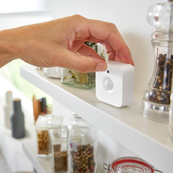 Bewegingssensor voor Philips Hue-armaturen Onmisbaar onderdeel binnen het Philips Hue smart home-systeem: de intelligente bewegingssensor kan overal in huis worden geplaatst, op muren, plafonds of zelfs vrijstaand op meubels. Hij is draadloos en kan ook op magnetische oppervlakken worden bevestigd dankzij een geïntegreerde magneet op de achterkant. De Hue-sensor registreert betrouwbaar bewegingen en activeert de lichtscène die vooraf in de app is geprogrammeerd, hetzij van een individuele armatuur of een groep van armaturen. Dit kan bijvoorbeeld een gedimd oriëntatielicht ‘s nachts zijn of een helder daglicht om ‘s morgens wakker te worden. Het heeft ook een geïntegreerde daglichtsensor die ervoor zorgt dat het licht alleen wordt ingeschakeld wanneer dat nodig is. Ook hier kan de lichtgevoeligheid via de app individueel worden geregeld. Technische gegevens / compatibiliteit: – Reactietijd < 0.5s - Bewegingssensor infrarood passief (PIR) met instelbare gevoeligheid - Daglichtsensor Omgevingslichtsensor (ALS) met instelbare gevoeligheid - Detectiehoek 100° horizontaal en verticaal - Hoekinstelling tot 60° horizontaal en verticaal - Bereik 5 m - Batterijen: 2 x AAA alkaline batterijen (meegeleverd) - Montage: vrijstaand of monteerbaar met magneet of schroef (bij levering inbegrepen) Opmerking: Kan alleen worden gebruikt in combinatie met de Philips Hue Bridge (zie accessoires). Bekijk productspecificaties