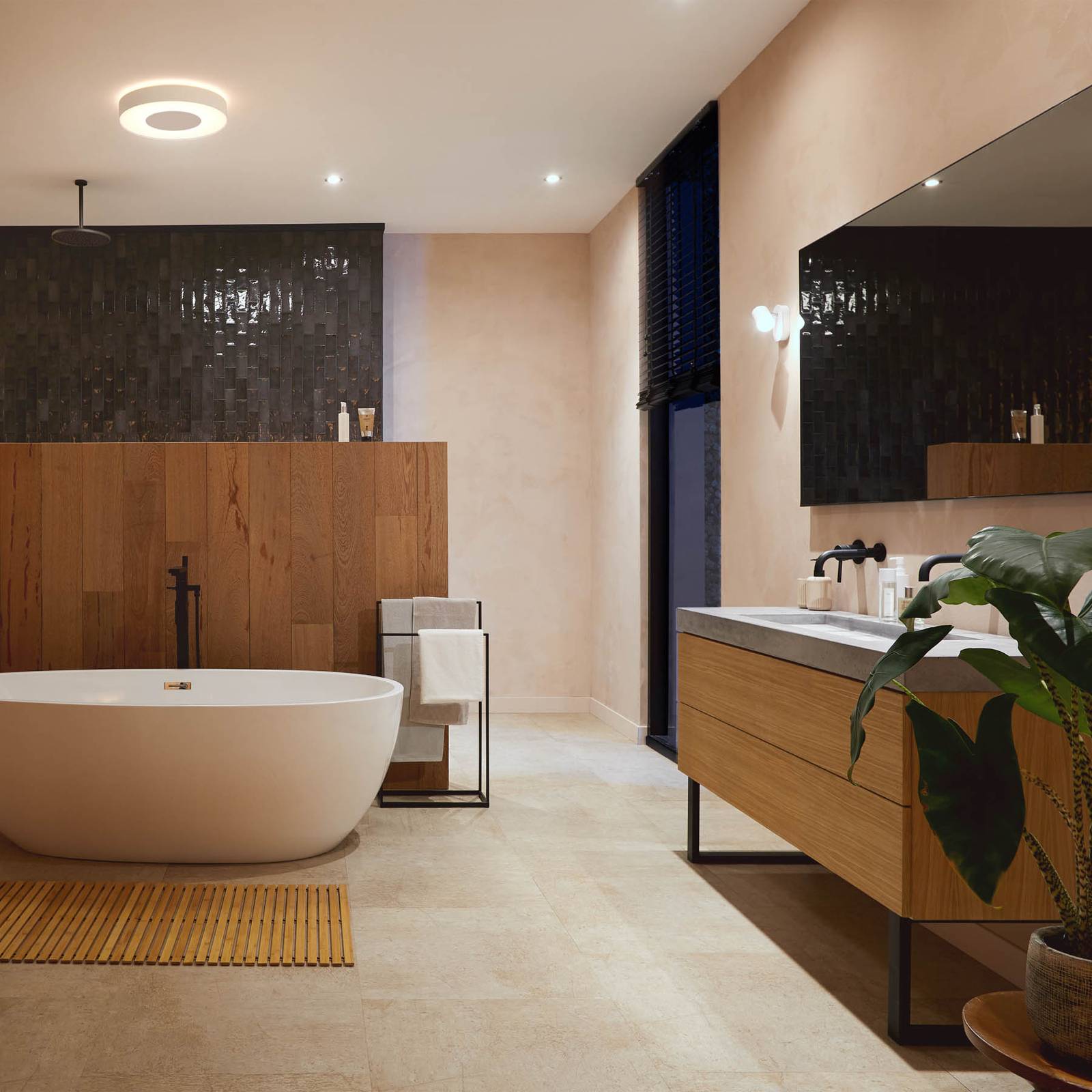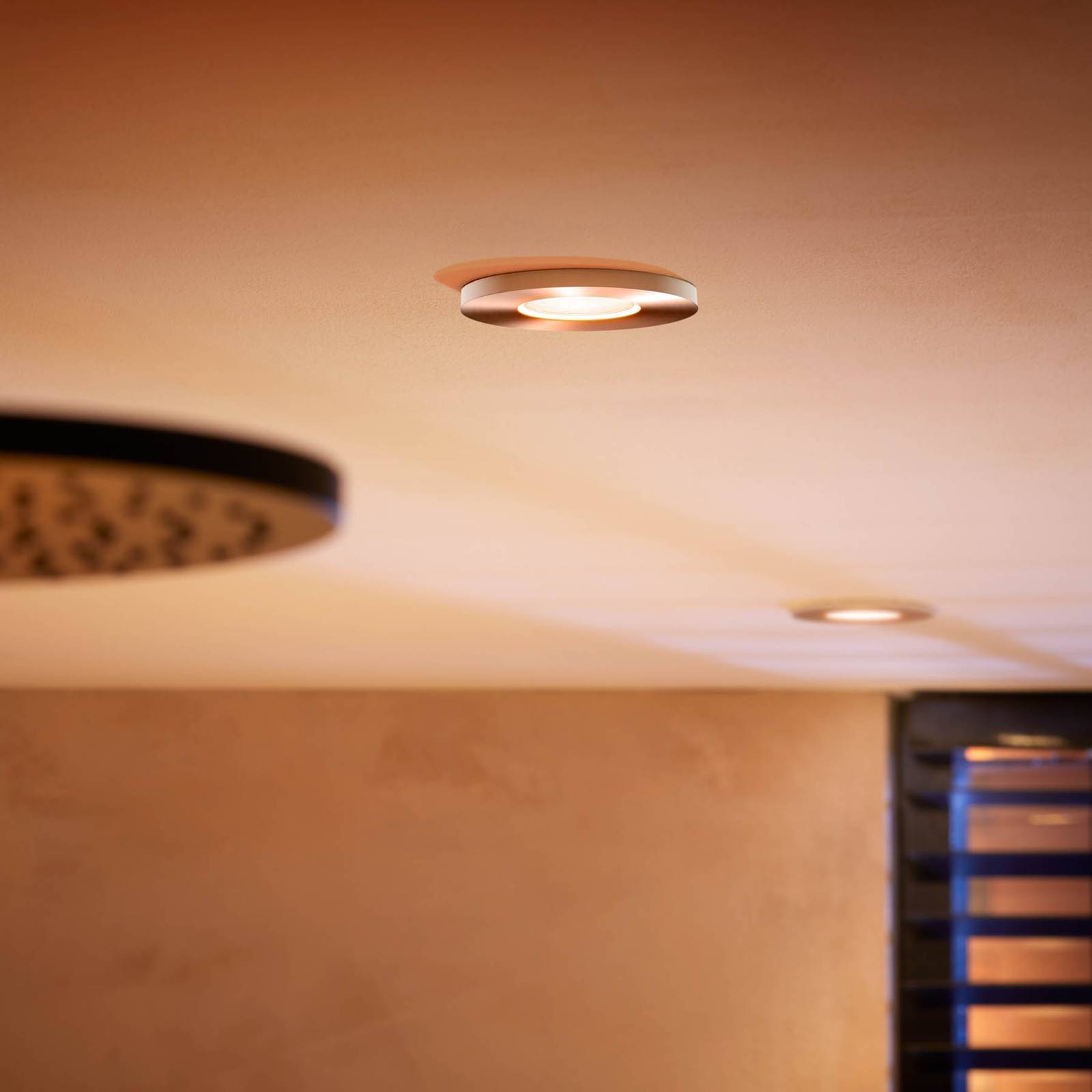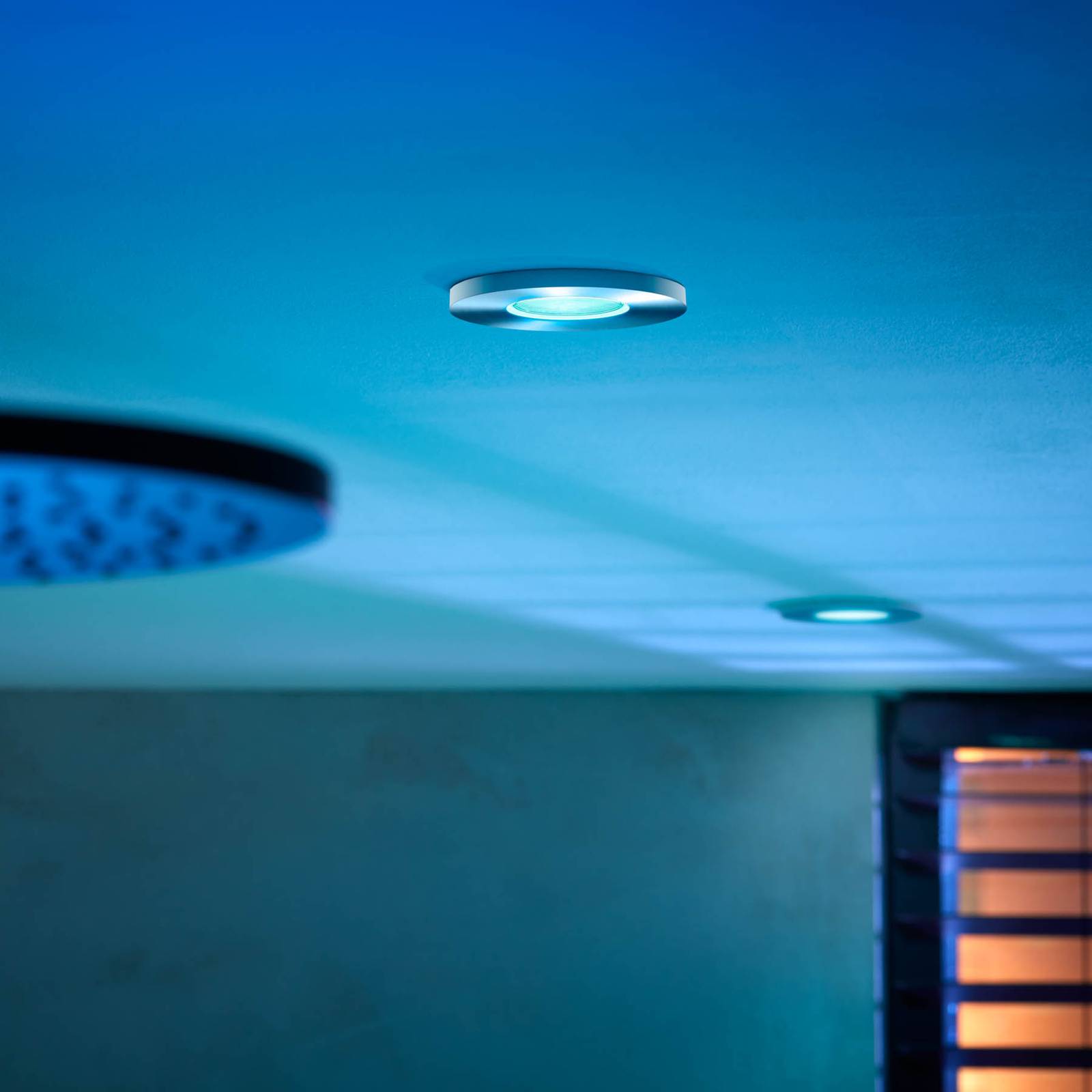 Set van drie spatwaterdichte Philips Hue LED-inbouwspots Xamento voor een gezellige sfeer in de woonruimte, slim regelbaar Of het nu in de woonkamer, keuken, slaapkamer of badkamer is, de moderne LED-inbouwspots Xamento uit de Philips Hue-productreeks creëren een decoratieve verlichtingssfeer, met wit of gekleurd licht. De spatwaterdichte LED-spots kunnen worden bediend met een geschikte dimschakelaar, een app of een stemassistent. Directe bediening met de smartphone/tablet is mogelijk via Bluetooth; schakelen, dimmen en de selectie van vooraf ingestelde lichtscènes is lokaal mogelijk via de Hue Bluetooth-app. Deze reeks functies is ook beschikbaar bij gebruik van de Hue-dimschakelaar. De integratie via ZigBee Bridge opent extra mogelijkheden. Afhankelijk van het geselecteerde smart home-systeem kan stembediening, integratie in slimme scènes of app-bediening worden ingesteld terwijl u onderweg bent. Speciale kenmerken / compatibiliteit – 3-pack – Bedienbaar met de Hue-dimschakelaar (zie accessoires) – dimbaar (via app of dimschakelaar) – bedienbaar via ZigBee of Bluetooth en bijbehorende app – Spraakbesturing mogelijk met Amazon Alexa, Apple HomeKit (Siri) en Google Assistant – Naast Philips Hue, compatibel met andere ZigBee-gebaseerde systemen, zoals Innogy, Bosch, Magenta (Telekom) en Busch-Jäger – Lichtregeling via Bluetooth – tot tien armaturen en lampen direct aanstuurbaar met gratis Hue Bluetooth app. Functies: aan, uit, dimmen, vooraf ingestelde lichtscènes. – Lichtregeling via ZigBee – integratie via bridge en router in een Smart Home-systeem, zoals Philips Hue (bridge zie accessoires). Hier kunnen veelzijdige functies worden gebruikt, waaronder bediening terwijl men onderweg is, het maken en gebruiken van schema’s en het programmeren van afzonderlijke scènes en automatiseringen.