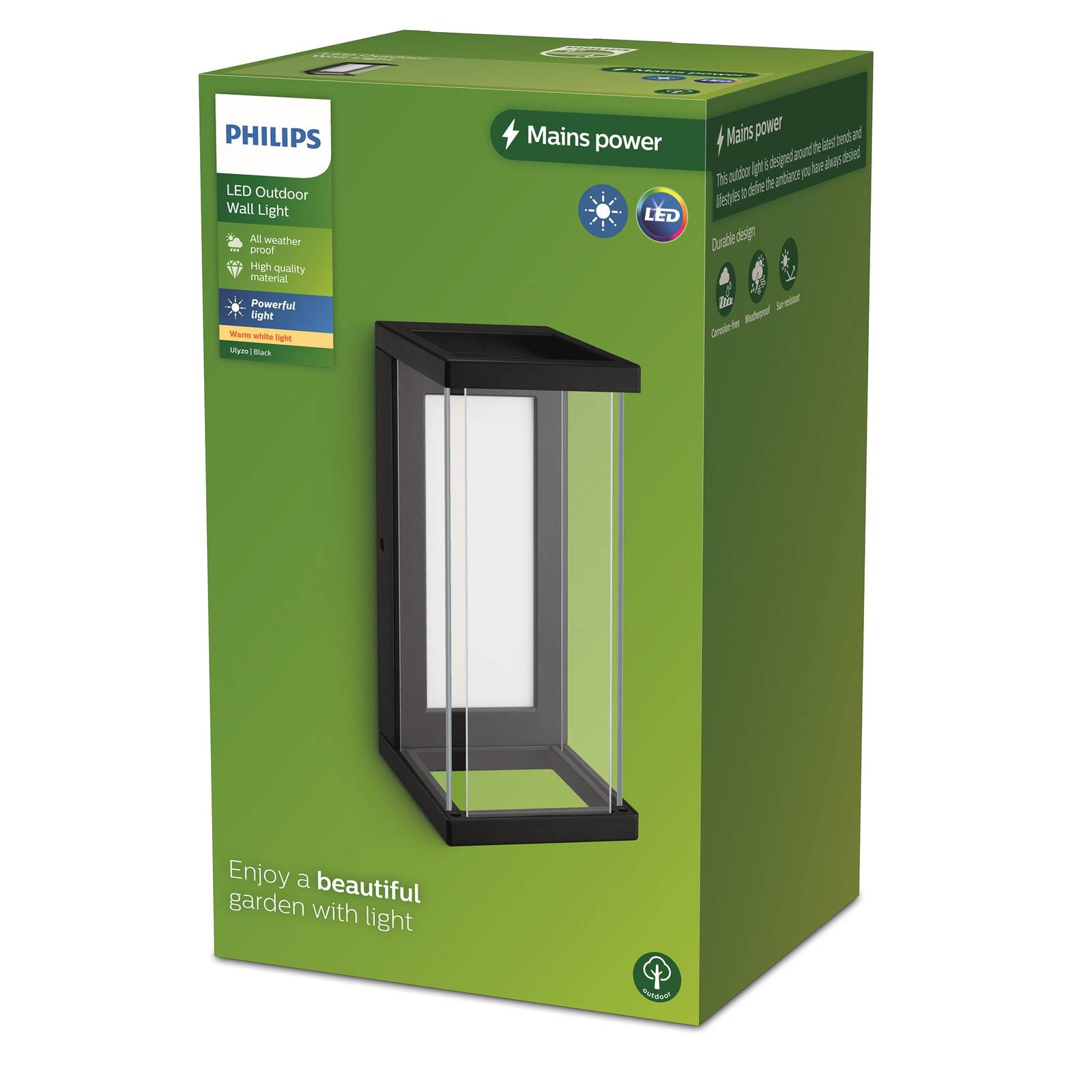 Zwarte LED buitenwandlamp Ulyzo met helder glazen kap In uitgeschakelde toestand fungeert de rechthoekige LED buitenwandlamp Ulyzo als decoratief Element van een Modieuze gevel. Ze is uitgerust met een krachtige LED lichtbron van Philips. Zodra het licht wordt ingeschakeld, verspreidt het zich door de heldere kap van glas in de omgeving en verlicht deze helder en veilig – hoogwaardige buitenlamp van duurzaam aluminium