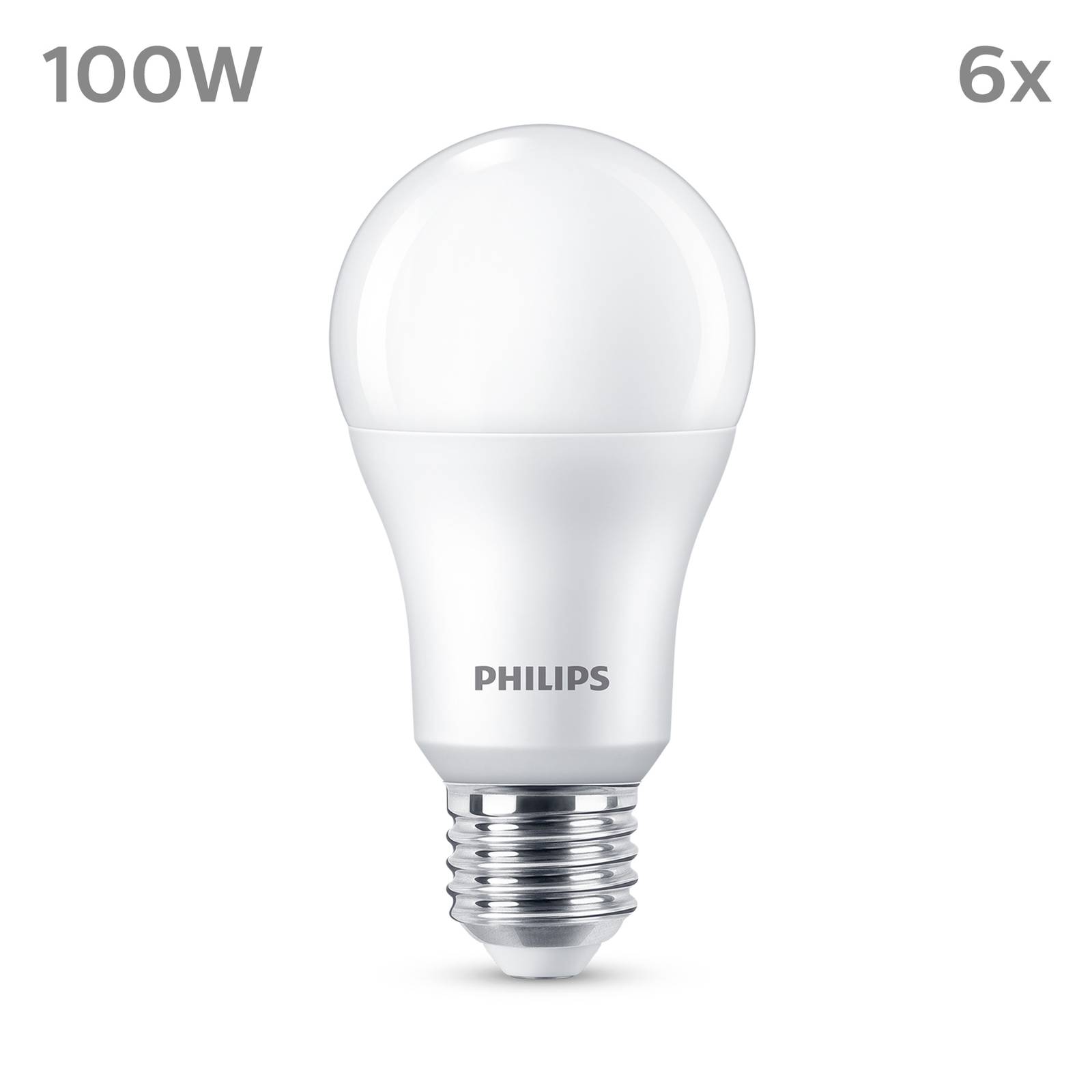 E27 LED lamp, 13W, 1.521lm, 2.700K met matte kunststof lamp, in een set van 6 Deze krachtige A67 LED lamp met E27 lampvoet vervangt conventionele gloeilampen van 100W. Door de matte lamp wordt het warmwitte licht homogeen naar alle kanten uitgestraald. – Geleverd in een verpakking van 6 – Niet dimbaar – Hoge schakelweerstand: 50.000 cycli