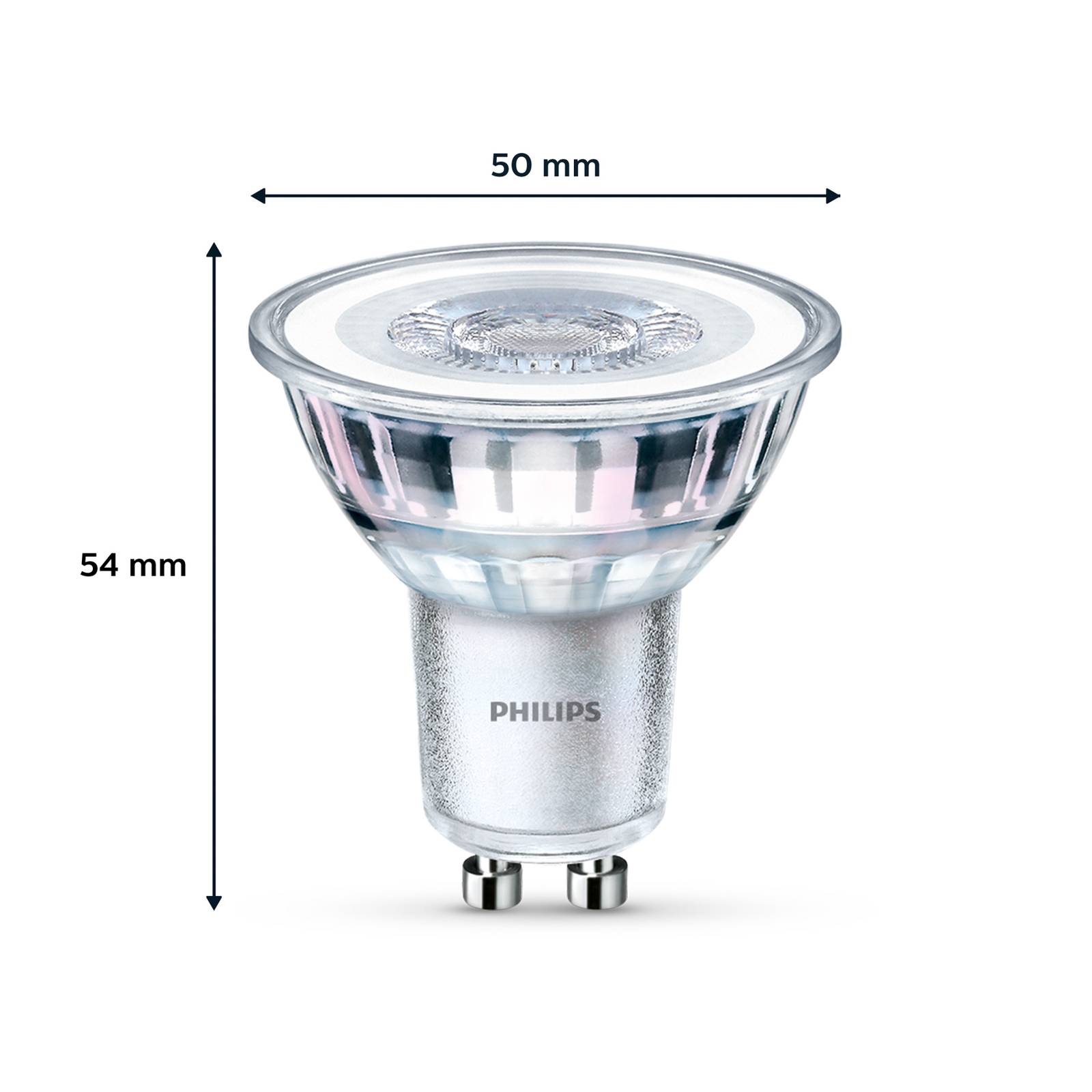 GU10 LED reflectorlamp, 3,5W, 275lm, 4.000K met helder glas, in een set van 3 Deze LED PAR16 lamp met GU10 lampvoet vervangt conventionele halogeenlampen van 35W. De reflector van helder glas straalt het universele witte licht uit onder een hoek van 36°. – Geleverd in een verpakking van 3 – Niet dimbaar – Hoge schakelweerstand: 50.000 cycli