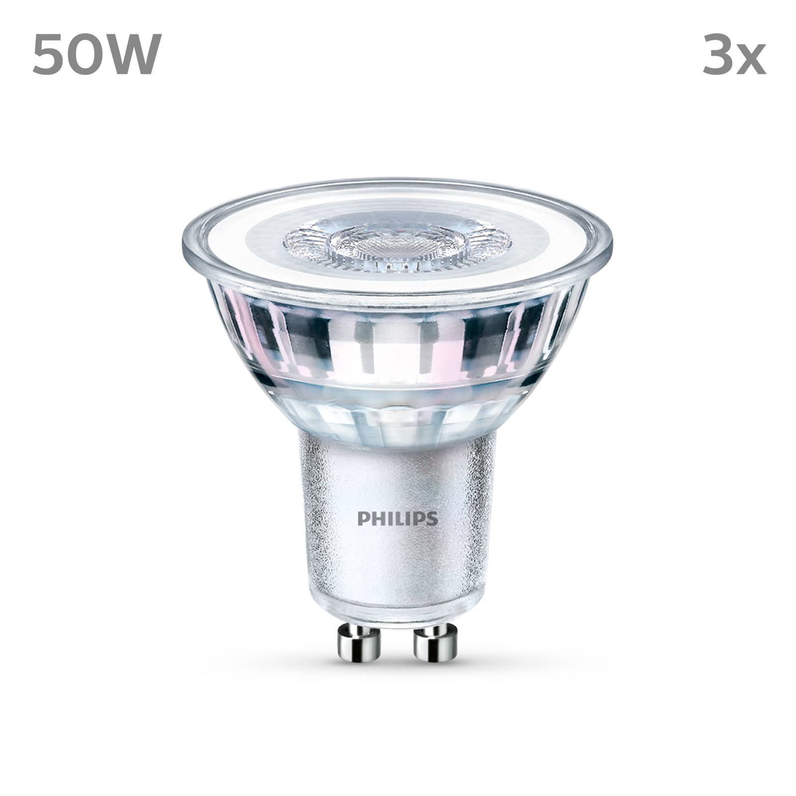 GU10 LED reflectorlamp, 4,6W, 355lm, 2.700K met helder glas, in een set van 3 Deze LED PAR16 lamp met GU10 lampvoet vervangt conventionele halogeenlampen van 50W. De reflector van helder glas straalt het warme witte licht uit onder een hoek van 36°. – Geleverd in een verpakking van 3 – Niet dimbaar – Hoge schakelweerstand: 50.000 cycli