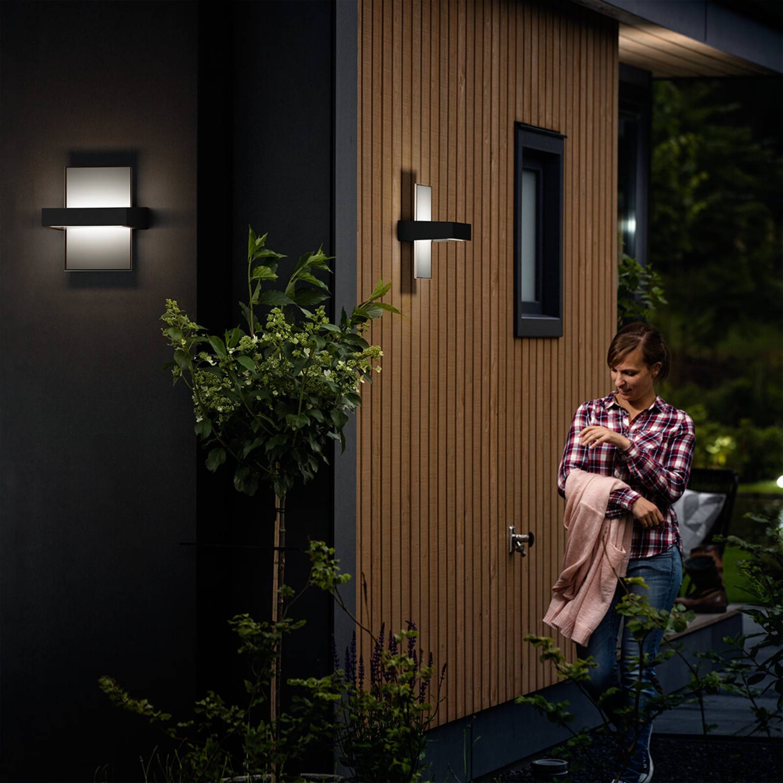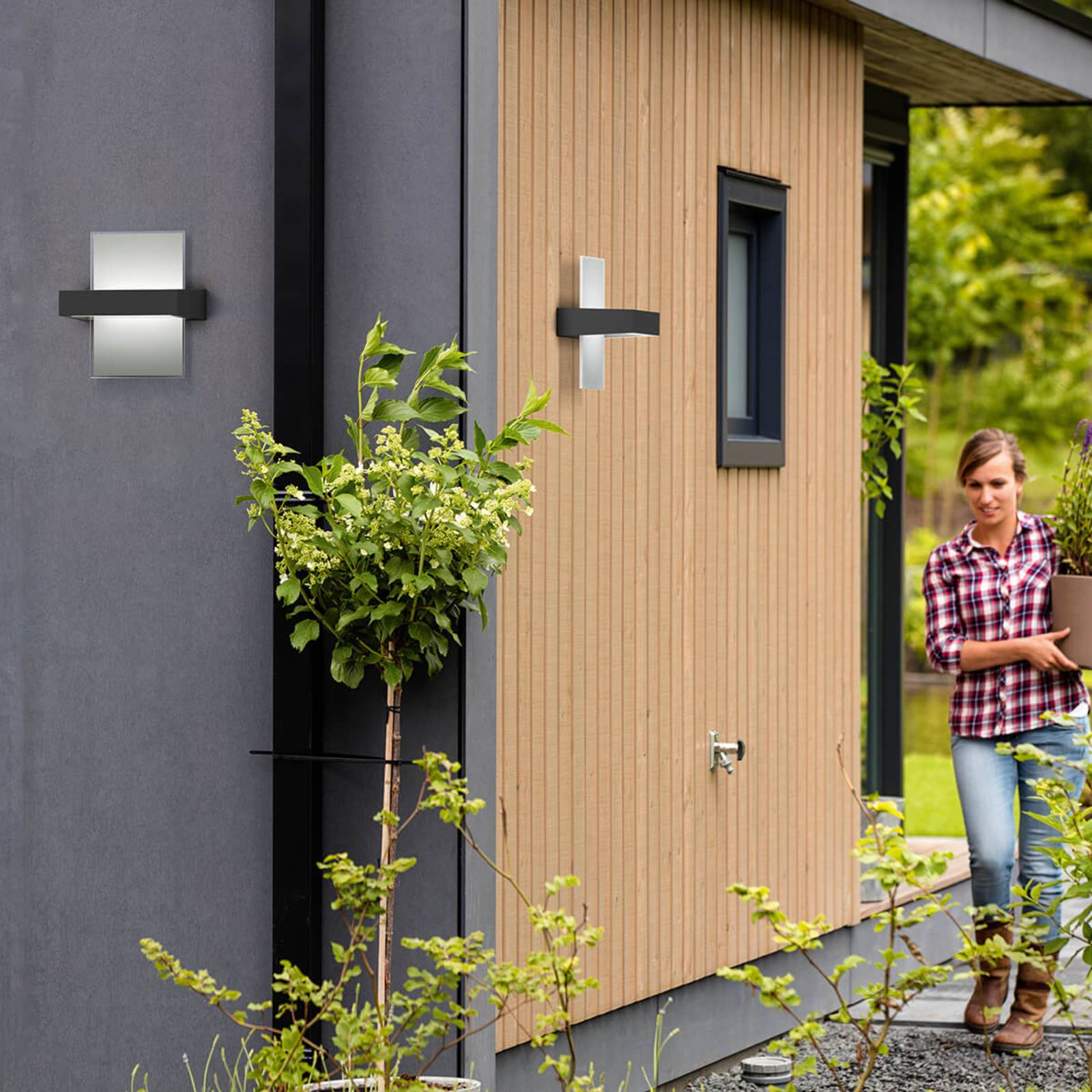 Topmodern en heel elegant: Led-buitenwandlamp Afterglow Met deze Led-buitenwandlamp wordt er energiezuinige en sfeervolle verlichting in de buitenomgeving gerealiseerd, omdat de lamp Afterglow bestaat uit een rechthoekige, gesatineerde glazen schijf en een antracietkleurige aluminium houder, dat voorzien is van warmwitte Leds. Het bijzondere daaraan is, dat de energiezuinige Leds zodanig in het aluminium frame zijn geplaatst, dat het licht direct uit de glazen schijf straalt, en zo een prachtig indirect lichteffect ontstaat. Al met al kan met de lamp Afterglow daardoor de omgeving op zeer aangename manier verlichten en tegelijkertijd ook mooie en stijlvolle accenten bieden.