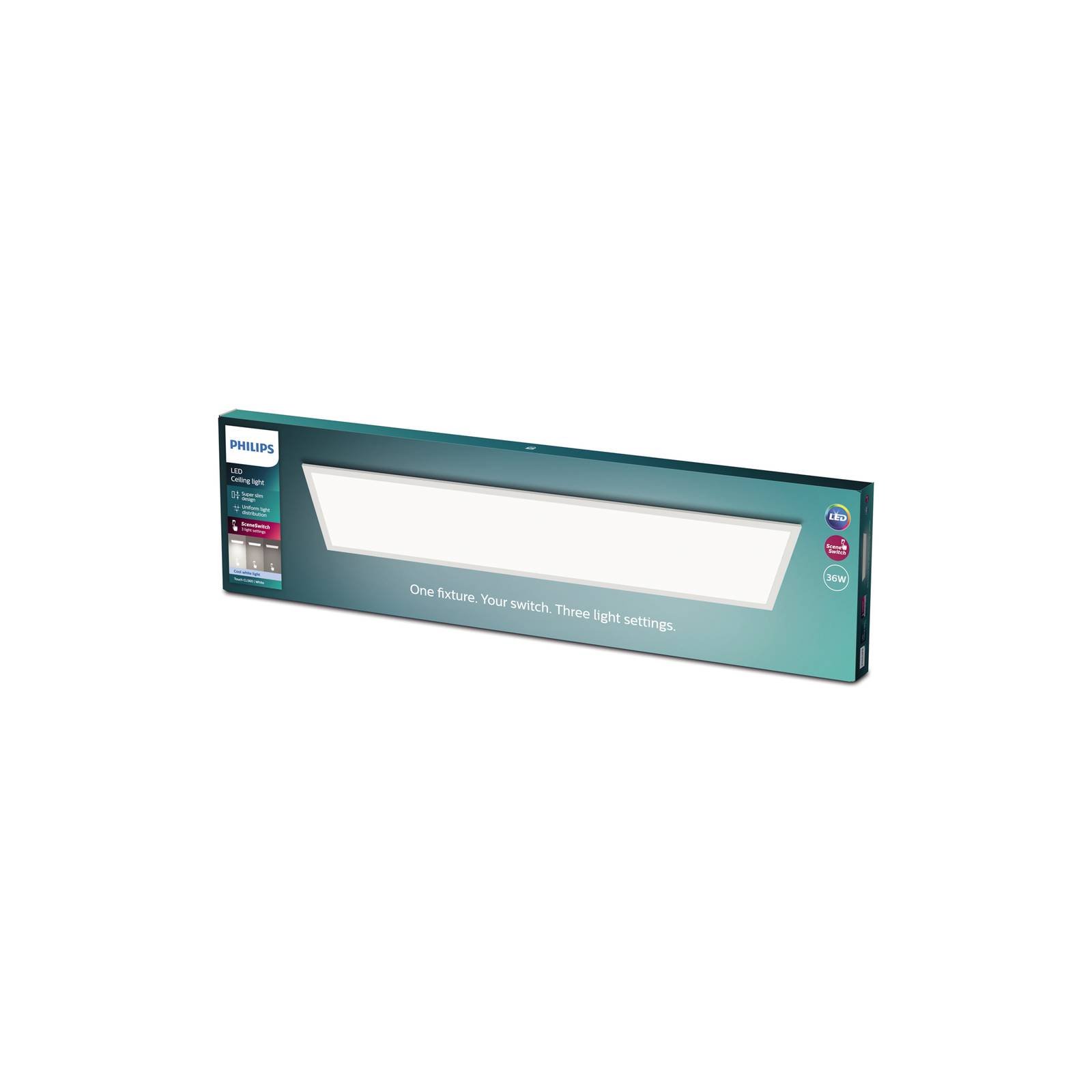 Rechthoekig LED paneel Touch met Scene-Switch functieHet witte, rechthoekige LED paneel Touch van Philips kan dankzij de Scene-Switch functie via de bestaande lichtschakelaar zonder extra installatie-inspanning in drie helderheidsniveaus worden geschakeld. Door meerdere keren op de lichtschakelaar te drukken, kunt u 100% helderheid, 50% helderheid of 10% helderheid selecteren.De geheugenfunctie slaat het geselecteerde helderheidsniveau op, zodat het licht bij het opnieuw inschakelen op het eerder geselecteerde helderheidsniveau schijnt.