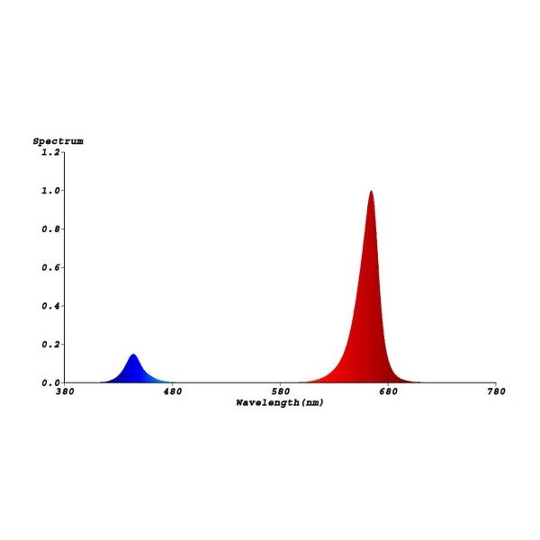 – spectrum S3 met golflengten van 450 (blauw) en 660 (rood) nm