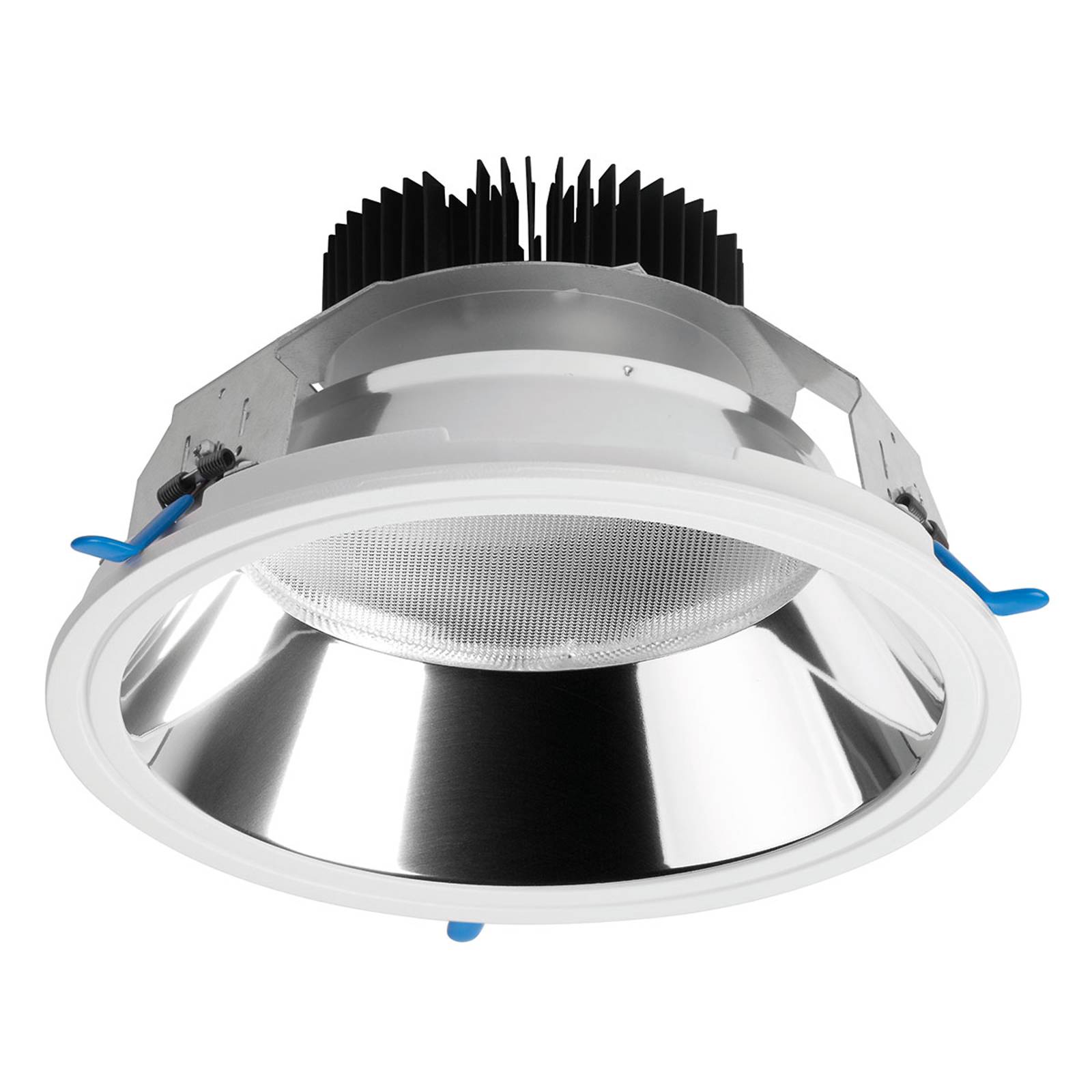 De witte, forse, ingebouwde LED-spot Prettus L is een effectieve en krachtige lichtbron voor kantoren en vele andere commerciële plaatsen zoals firma’s, medische praktijken of gangen. Door middel van een microprismatische diffuser stralen de LED’s hun licht verstrooid uit en de gepolijste reflector van geanodiseerd aluminium verstevigd dit, opdat helder licht beneden een hoek van 69° wordt uitgestraald.