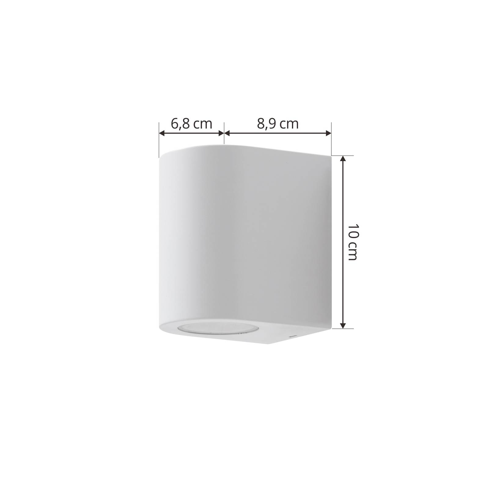 Witte buitenwandlamp Irfan met afgeronde behuizingMet haar witte kleurstelling en eenvoudige vorm integreert de buitenwandlamp Irfan gemakkelijk in de architectonische stijl van een huis zonder deze te breken. Het is gemaakt van kunststof en het oppervlak is onopvallend wit gehouden. Hij kan worden uitgerust met een GU10 lamp, waarvan het licht aan de onderkant van de behuizing wordt uitgestraald. Dit zorgt voor een niet-verblindende verlichting. De beschermingsgraad IP44 geeft aan dat de Irfan buitenwandlamp beschermd is tegen spatwater.