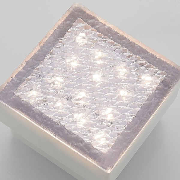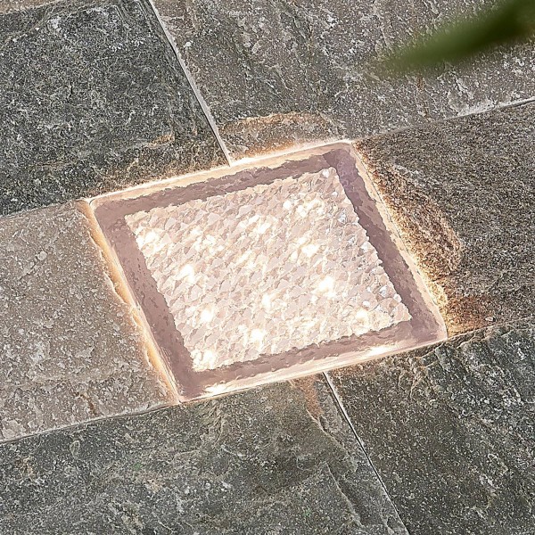 Vierkante LED inbouwlamp Ewgenie, beloopbaar en slagvast Met een geringe inbouwdiepte van slechts 6 cm is de warmwit stralende LED inbouwlamp niet overrijdbaar, maar wel beloopbaar tot 500 kg. Het is daarom geschikt voor verlichting op terrassen of tuinpaden en overal waar geen auto’s zijn. De armatuur Ewgenie heeft de hoogste slagvastheidsklasse IK10, wat het een robuuste vloerlamp maakt. Doorvoerbedrading is hier echter niet mogelijk en de oppervlaktetemperatuur bedraagt max. 45° Celsius.