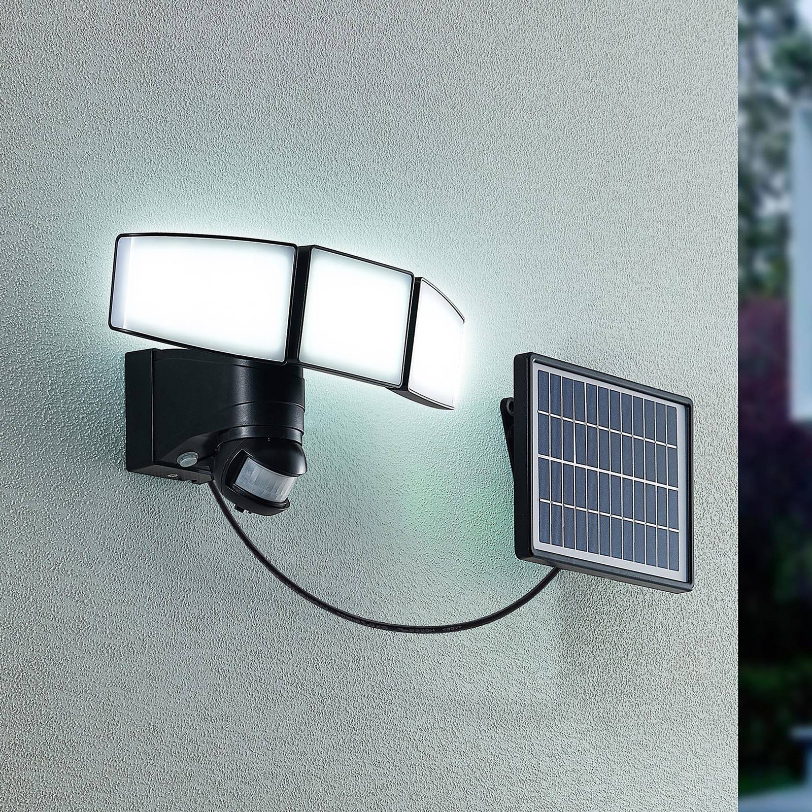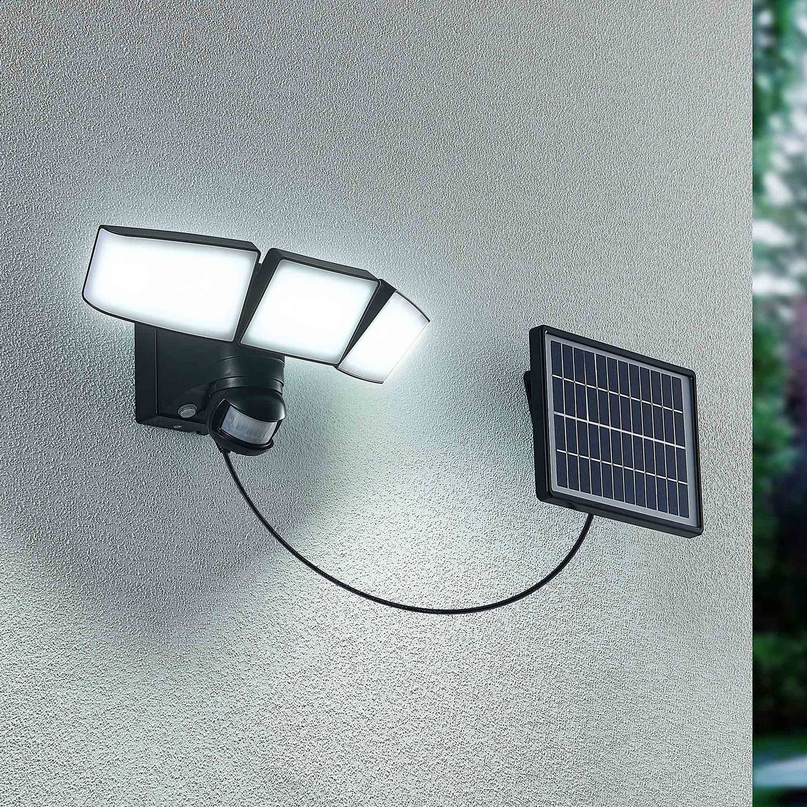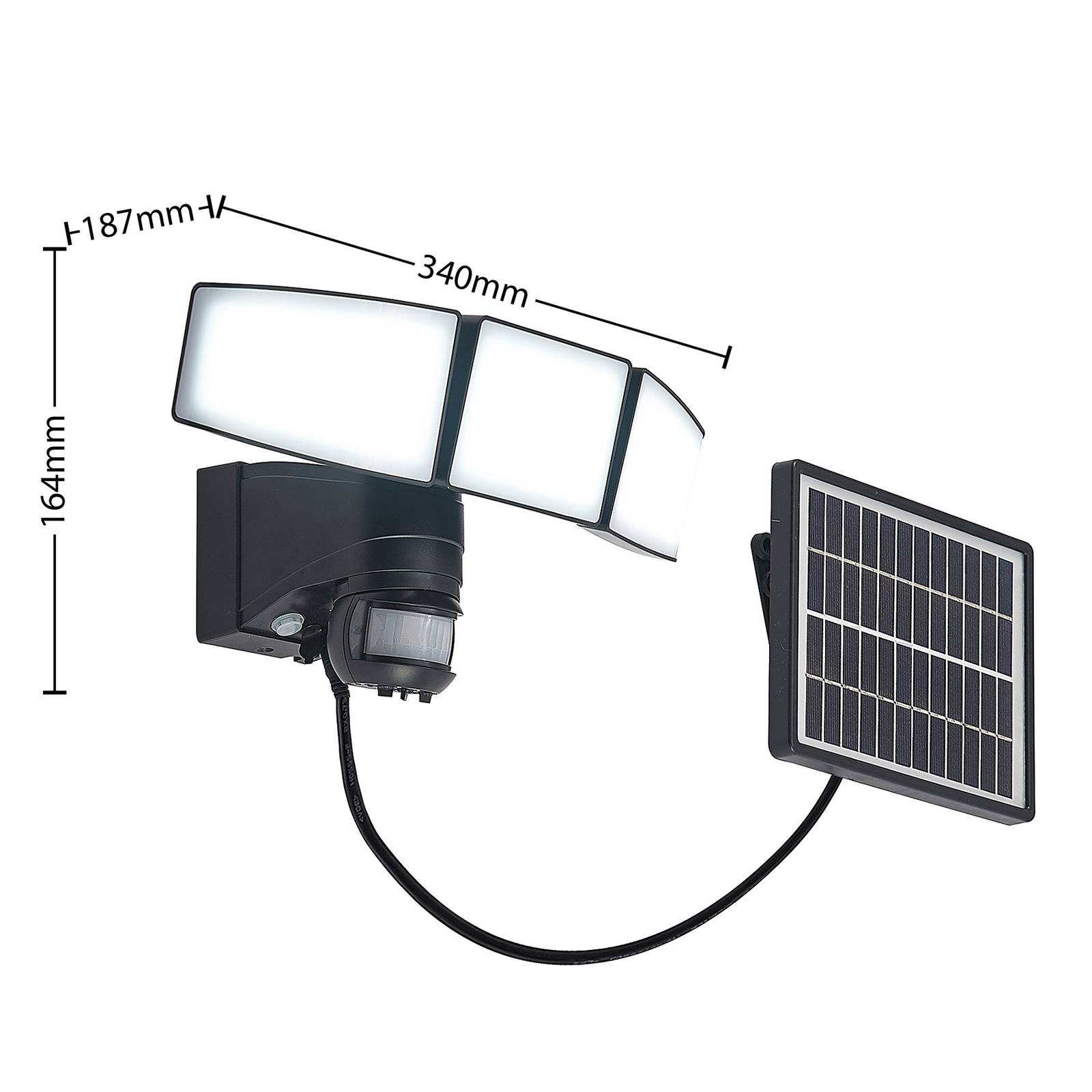 Drie-lamps LED wandspot op zonne-energie Kalvito met bewegingsmelder De Kalvito LED wandspot op zonne-energie overtuigt door zijn moderne design en zijn geavanceerde zonnetechnologie. Hij heeft drie LED-panelen die zo nodig flexibel zwenkbaar zijn, zodat de stralingshoek individueel kan worden bepaald. Het daglicht van de LED’s is bijzonder praktisch in de avonduren en dient voor een goede verlichting van de buitenruimte. De geïntegreerde bewegingsdetector heeft een detectiehoek van 140° en reageert op een afstand van maximaal 10 meter. De verlichtingsduur kan individueel worden geregeld tussen 3 seconden en 7 minuten. Technische gegevens van de bewegingsmelder: – Hoek van detectie: 140 – Maximale afstand: 10 meter – Regelbare lichtduur: 3 seconden tot 7 minuten