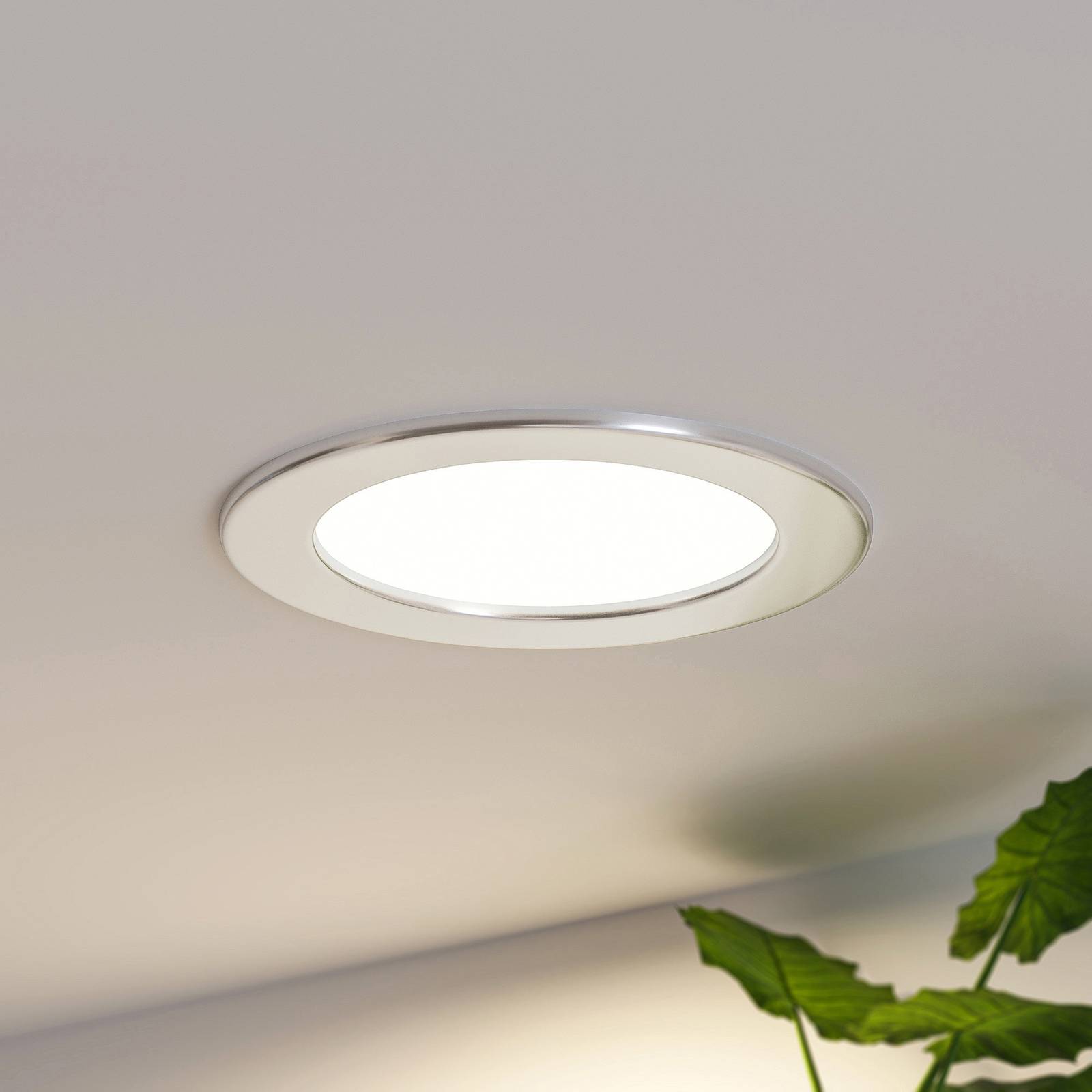 Zilveren LED inbouwlamp Candance in ronde vorm, IP44, lichtkleur instelbaar voor installatie, dimbaar – in een praktische set van 10 Dit is een echte allrounder, want de LED inbouwlamp Candance heeft verschillende technische voordelen te bieden. De ronde vorm en zilveren afwerking geven hem een bijzonder eenvoudige uitstraling voor een breed scala aan toepassingen in privévertrekken of commerciële omgevingen, terwijl de inbouwlamp een hogere beschermingsgraad heeft, wat betekent dat Candance zonder problemen kan worden geïnstalleerd in badkamers en over het algemeen vochtige ruimtes. Vóór installatie kan de lichtkleur ook worden ingesteld met een DIP-schakelaar op de behuizing en de efficiënte LED lamp kan ook worden gedimd als er een externe dimmer is geïnstalleerd. De lamp wordt geleverd in een set van 10. Installatiediameter: – Variant 1 (11,5 cm): 10-11 cm – Variant 2 (17 cm): 15-16 cm – Variant 3 (22 cm): 20-21 cm – Variant 4 (24 cm): 22-23 cm