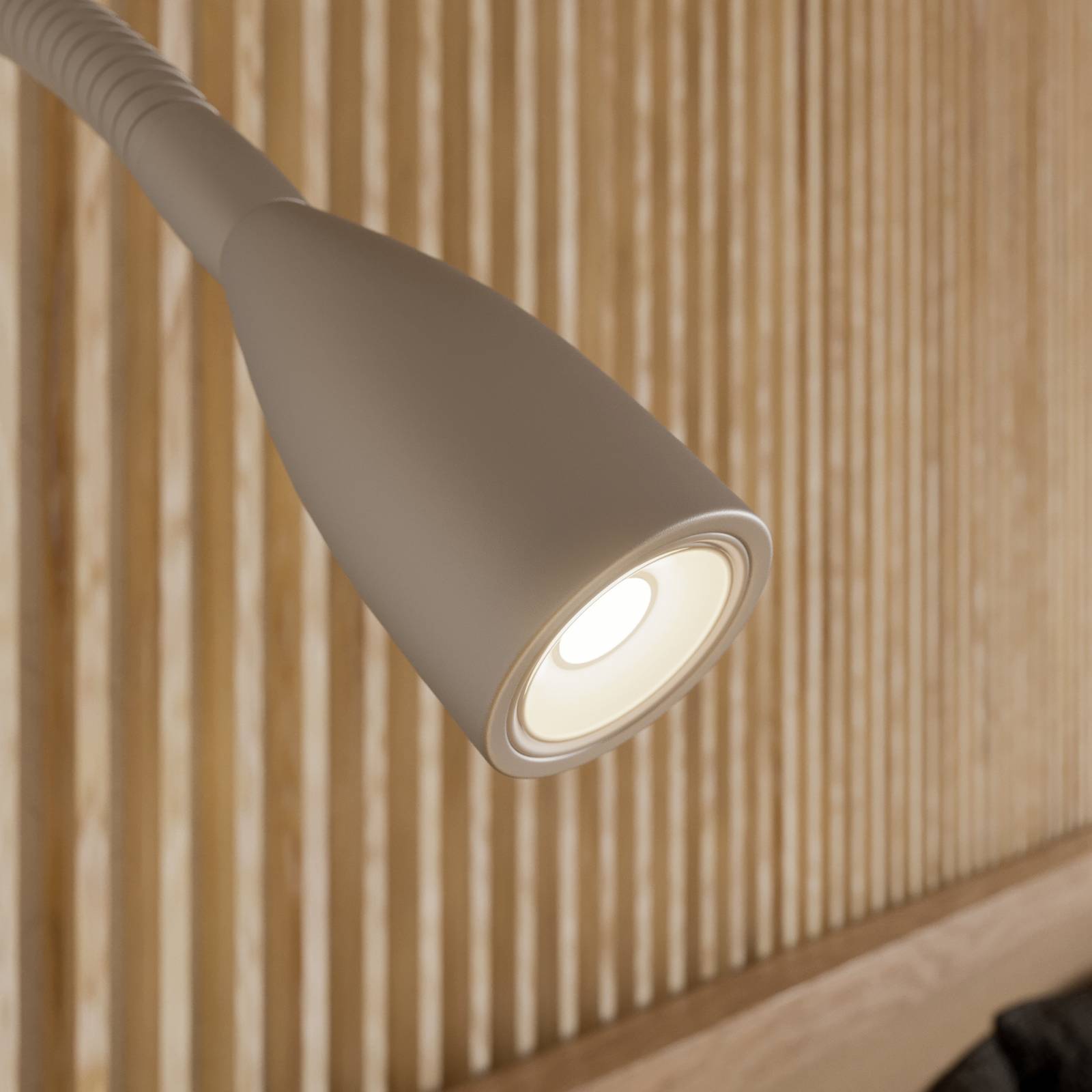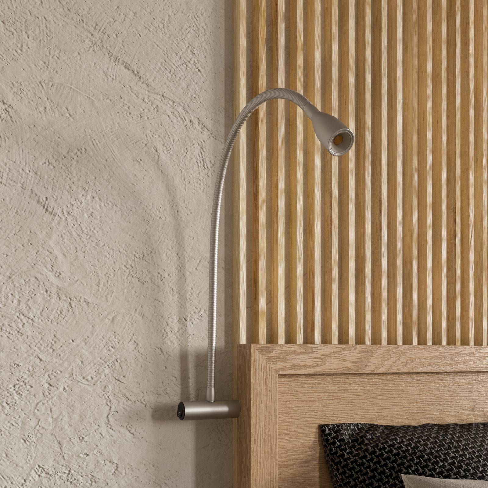 Slanke LED-opbouwarmatuur Apolonia in een praktische set van 2 De LED-opbouwarmatuur Apolonia is veelzijdig en kan gemakkelijk op meubels worden gemonteerd. Hij is gemaakt van aluminium en kunststof en heeft een discrete zilveren afwerking. De compacte lampenkap zit op een flexarm die naar wens kan worden uitgelijnd en altijd voor de juiste verlichting zorgt. Aan de voet van de LED-opbouwlamp Apolonia is een tuimelschakelaar bevestigd, waarmee de armatuur moeiteloos kan worden in- en uitgeschakeld. De lamp is verbonden met de stroomvoorziening met behulp van een smalle kabel, die flexibele plaatsing en herpositionering mogelijk maakt. Bovendien wordt hij geleverd in een praktische set van 2, waardoor het mogelijk wordt een samenhangend geheel te creëren.
