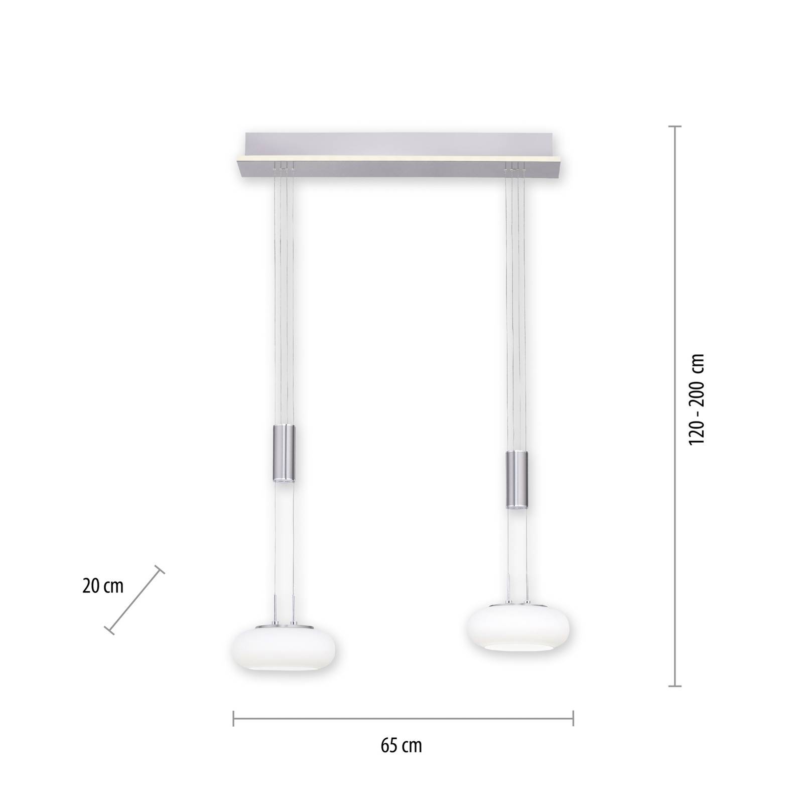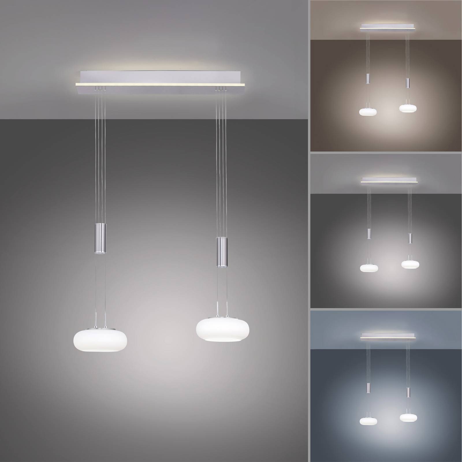 Innovatieve LED-pendelarmatuur Q-Etienne met afstandsbediening en hoogteverstellingZacht glanzend licht voor een gezellig samenzijn of helder licht voor het lezen van de krant – met de LED-pendelarmatuur Q-Etienne creëert u altijd de juiste sfeer. Deze kan comfortabel worden ingesteld via de meegeleverde afstandsbediening, waarmee naast de helderheid of de lichttemperatuur ook verschillende scènes kunnen worden ingesteld. Dankzij de hoogteverstelbaarheid van de kappen kan de lichtkegel ook individueel worden geregeld, zodat deze optimaal aan de omstandigheden kan worden aangepast. Bovendien is Etienne uitgerust met extra LED’s op de kap, die zorgen voor extra ruimteverlichting.Bijzonderheid: Q-Etienne is uitgerust met de innovatieve ZigBee-standaard, waardoor het mogelijk is om hem aan te sluiten op een smart home-systeem en zo te bedienen via een app met behulp van een smartphone of tablet.Technische gegevens/compatibiliteit:- dimbaar- in hoogte verstelbaar van 120 – 200 cm- instelbare kleurtemperatuur van warm wit tot universeel wit- geheugenfunctie- bediening met bijgeleverde afstandsbediening- ZigBee-capabel- spraakbediening met Echo Plus en Echo Show (2e generatie) direct mogelijk- bij integratie in een op ZigBee gebaseerd smart home systeem ook handig te bedienen via app of spraakcommandoNoot: Voor integratie in een smart home systeem is een bridge nodig, deze maakt geen deel uit van de levering.