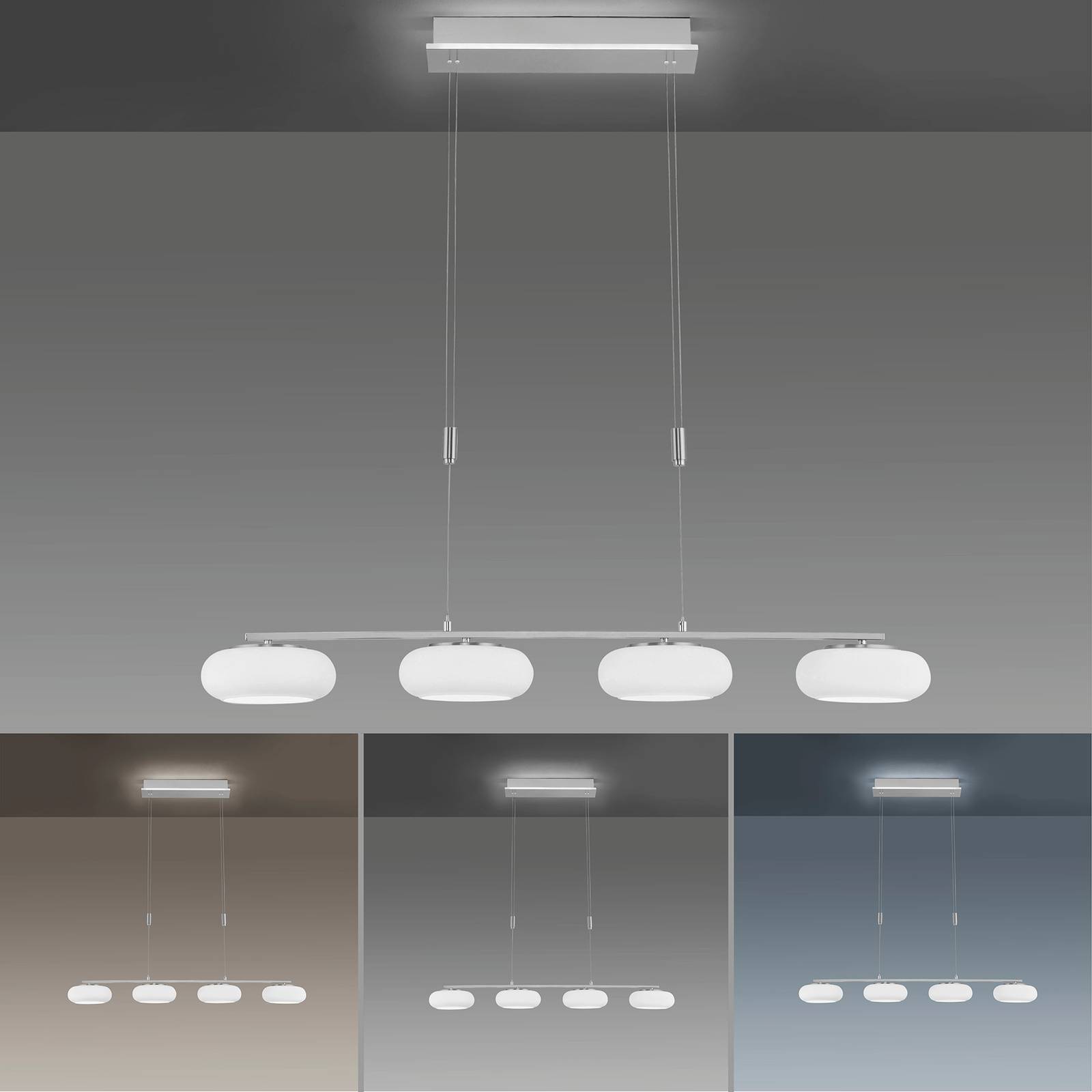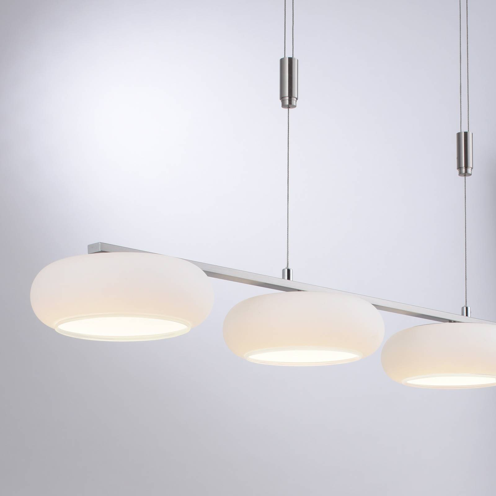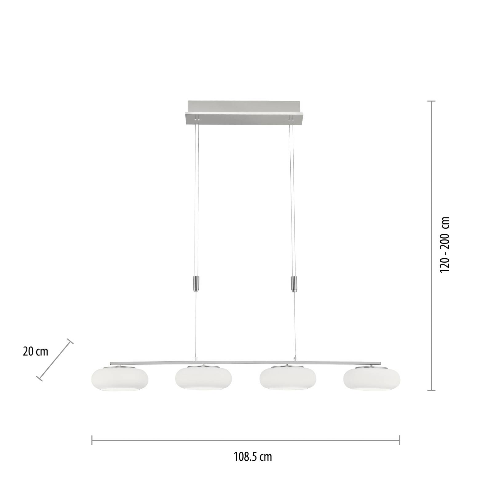 ZigBee-compatibele LED-hanglamp Q-Etienne met hoogteverstellingMet de LED-hanglamp Q-Etienne kunnen eetruimtes niet alleen optimaal worden verlicht, maar ook stijlvol worden aangevuld. Dit wordt bereikt door de combinatie van de zilverkleurige kap en de vier daarop bevestigde lampenkappen van opaalglas. Met de meegeleverde afstandsbediening kunnen de ingebouwde CCT LED-modules worden gedimd, in lichttemperatuur worden veranderd of ook in verschillende scènes worden geschakeld, zodat op elk moment het perfecte verlichtingsmoment kan worden gecreëerd. Dankzij de geïntegreerde ZigBee-standaard is ook een verbinding met een bestaand smart home-systeem mogelijk, zodat naast spraakbesturing ook bediening via smartphone of tablet mogelijk is. Bovendien kan de hoogte van de lichtbalk handmatig worden gevarieerd van 120 – 200 cm. Technische gegevens/compatibiliteit:- dimbaar- hoogte instelbaar van 120 – 200 cm- instelbare kleurtemperatuur van warm wit tot universeel wit- geheugenfunctie- bediening met bijgeleverde afstandsbediening- ZigBee-compatibel- spraakbediening met Echo Plus en Echo Show (2e generatie) direct mogelijk- bij integratie in een op ZigBee gebaseerd smart home systeem ook handig te bedienen via app of spraakcommandoNoot: Voor integratie in een smart home systeem is een bridge nodig, deze maakt geen deel uit van de levering.