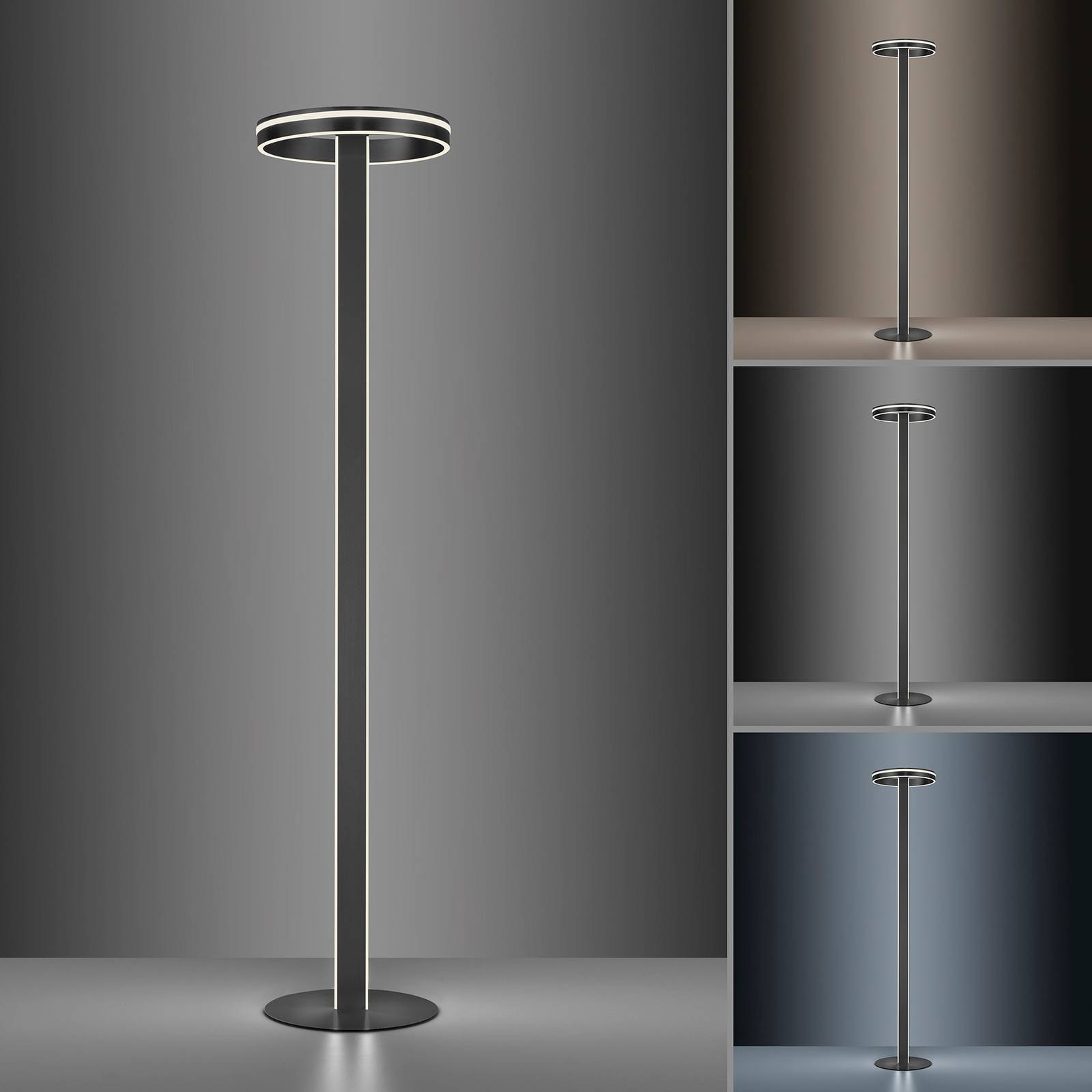 ZigBee-compatibele Q-VITO LED vloerlamp met afstandsbedieningMet haar slanke, moderne frame past de Q-VITO LED vloerlamp gemakkelijk in verschillende woonomgevingen. De smalle lichtuitgangen zijn zowel in het frame als in de ringvormige kap geïntegreerd en zorgen voor aangenaam achtergrondlicht in de kamer. De lampenkap kan ook flexibel worden gedraaid. De praktische functies kunnen worden bediend via de meegeleverde afstandsbediening: het is mogelijk de vloerlamp te dimmen en de lichtkleur te veranderen van warm wit naar universeel wit. Met de selecteerbare lichtscènes worden op elk moment de optimale lichtomstandigheden gecreëerd en de geheugenfunctie keert terug naar de laatst opgeslagen lichtinstelling. Dankzij de ZigBee-capaciteit van de vloerlamp kan deze ook worden geïntegreerd in overeenkomstige Smart Home-systemen. Zo is het ook mogelijk om Q-VITO via app of spraakbesturing te bedienen.Technische gegevens/compatibiliteit:- dimbaar- lichttemperatuur instelbaar van warm wit tot universeel wit- geheugenfunctie- schakelen van maximaal 20 individuele Q-lights of Q-lights naar max. 3 groepen met slechts één Q-afstandsbediening- ZigBee-geschikt- te bedienen met de afstandsbediening- spraakbesturing via Echo (4e. Bij integratie in een op ZigBee gebaseerd smart home systeem, kan het ook gemakkelijk worden bediend via app of spraakopdrachtNoot: Voor integratie in een smart home systeem of app-bediening is een bridge nodig; deze is niet bij de levering inbegrepen