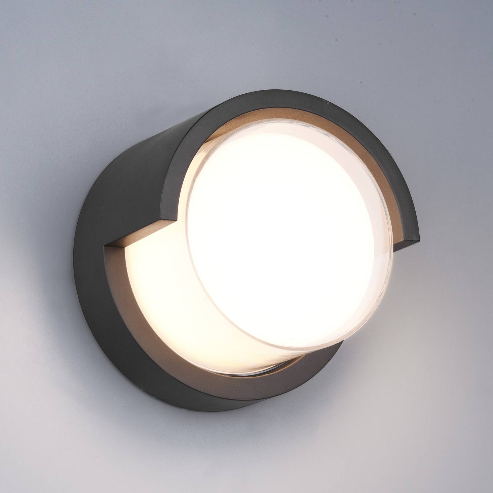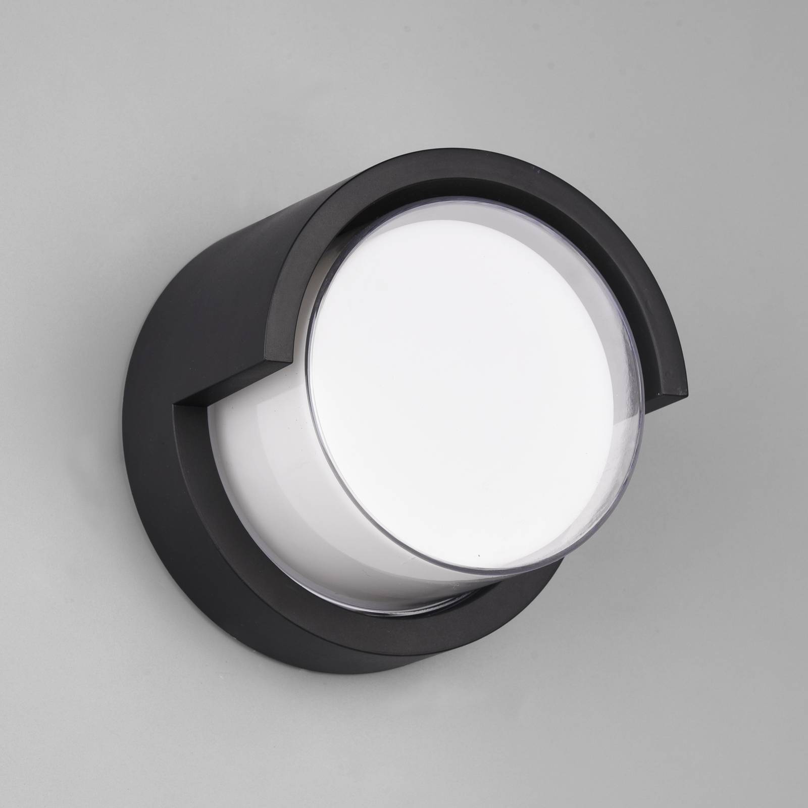 Dankzij de beschermingsgraad IP54 is de LED-wandlamp Puno ideaal voor gebruik buitenshuis. Met haar tijdloze, ronde design in zwart en wit past ze goed in talrijke omgevingen en verlicht ze entree, terras of balkon met aangenaam warm licht.