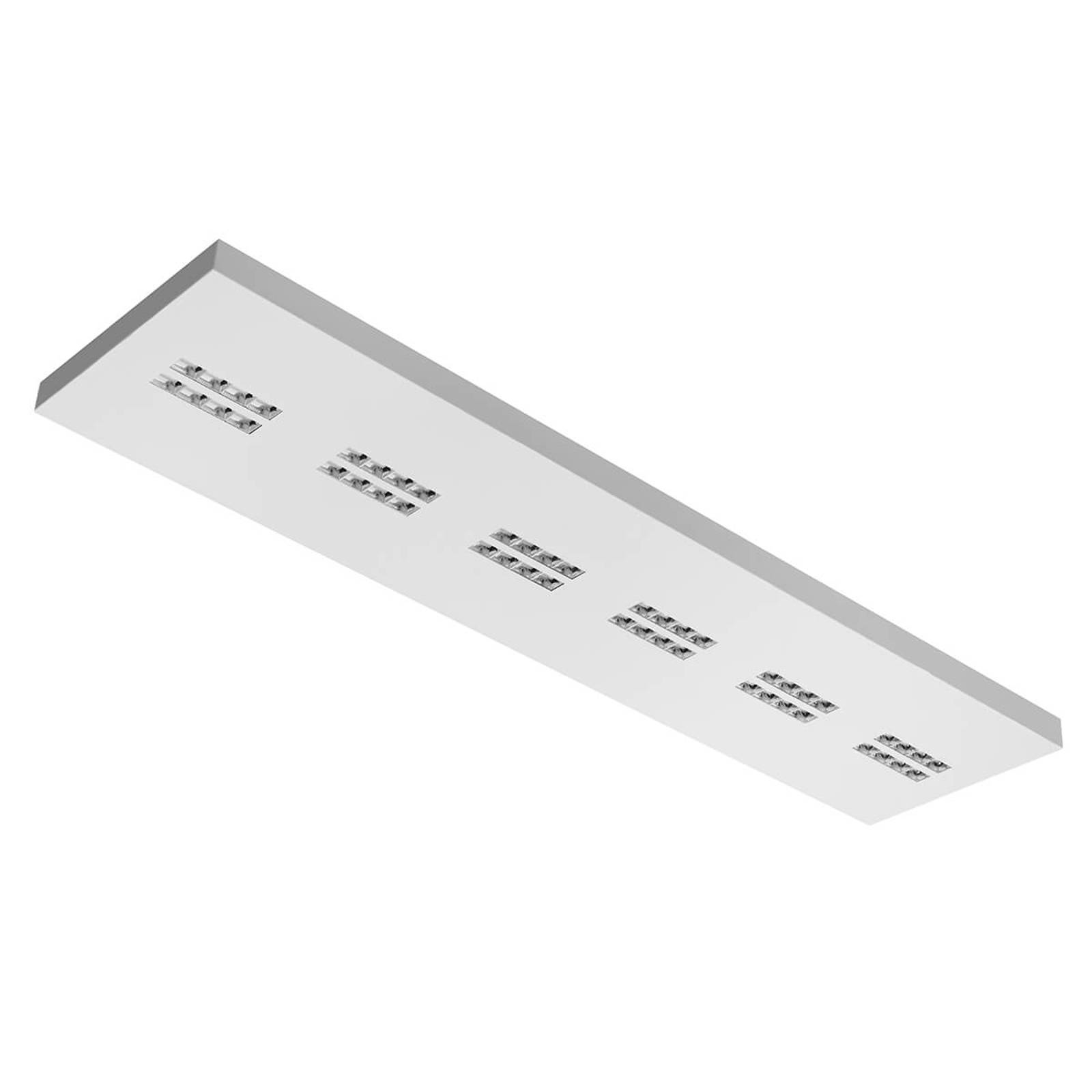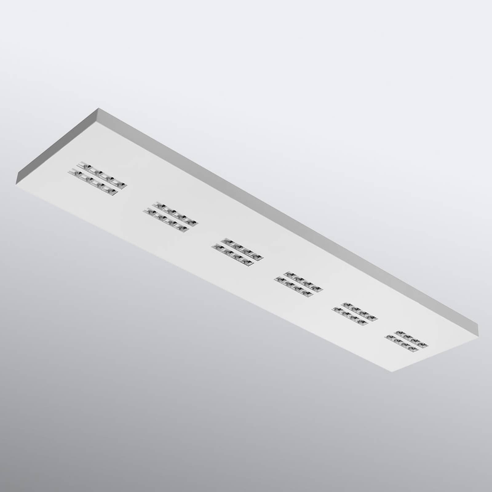 De Declan II rechthoekige LED-plafondlamp kan aan het plafond worden bevestigd, maar kan tevens als hanglamp worden bevestigd met de als accessoire verkrijgbare ophangset. Het is buitengewoon prettig voor het verlichten van kantoor- of vergaderruimtes, gangen en winkels, die dankzij de hedendaagse LED-technologie met universeel wit licht worden verlicht. De behuizing van het armatuur is vervaardigd van wit gelakt plaatstaal. Een diffusor van microprismatisch PMMA zorgt voor een regelmatige lichtverdeling, de reflectoren van verchroomd polycarbonaat verblindingsvrij en reflecteren het licht. In het armatuur is een elektronisch voorschakelapparaat geïnstalleerd.