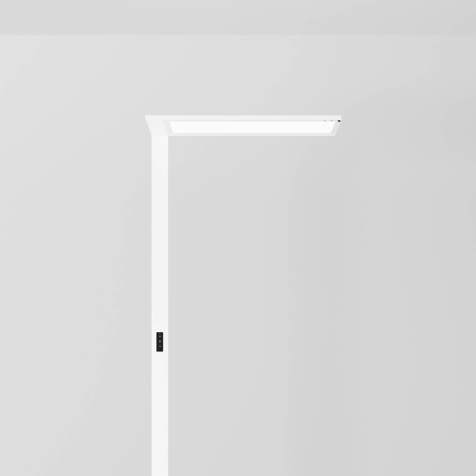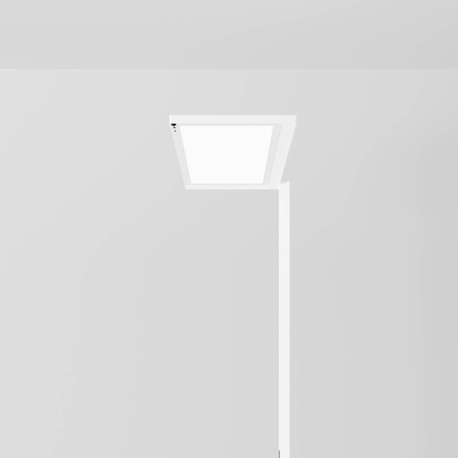 LED vloerlamp met één lamp voor kantoor Lightpad voor enkel bureau Met deze vloerlamp kunnen adequate lichtomstandigheden in het kantoor worden gecreëerd. Lightpad is gemaakt van wit gelakt aluminium en heeft een U-vormige voet. Met de door fabrikant Regent gecertificeerde MINERGIE® module en een UGR
