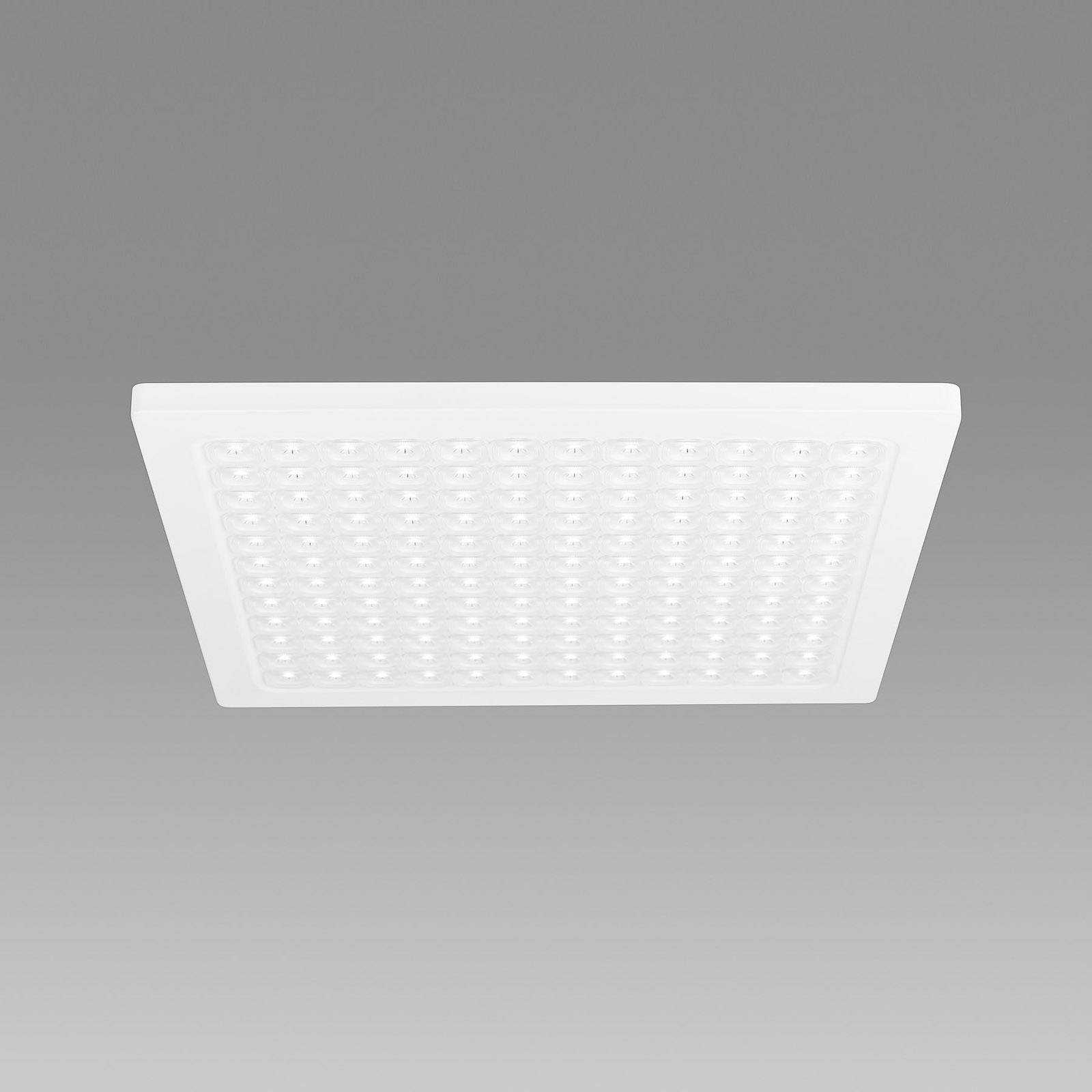 Ideale kantoorverlichting dankzij innovatieve optiek: LED-plafondarmatuur Dime Office De opbouwarmatuur Dime Office overtuigt door een verblindingsvrij direct licht dat vlak en tegelijk gericht is en geen meervoudige schaduwen produceert. Dit wordt bereikt door middel van een speciale “Square Optics” collimatoroptiek. De LED-lichtbron is een MINERGIE®-module van de fabrikant Regent, die een uitstekende energie-efficiëntie heeft. De lichtopbrengst kan extern worden geregeld dankzij het DALI-dimbare geïntegreerde voorschakelapparaat. – Verblindingsverminderingsindex UGR: < 19 - Slagvastheid: IK06 - Lichtsterkte: max. 3000 cd/m² Bekijk productspecificaties