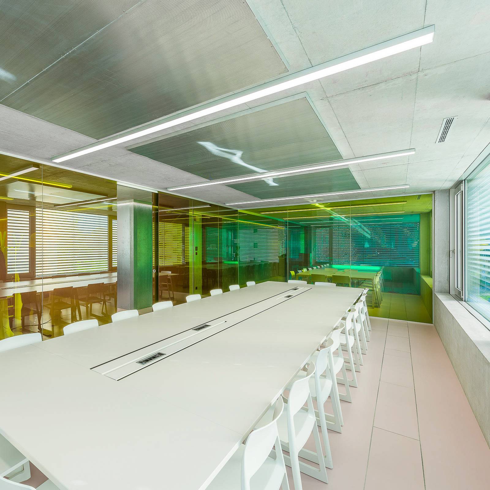 Allround verdeling Purelite Office opbouw LED-armatuur voor plafond en wand De Purelite Office opbouwarmatuur is een zeer efficiënte LED-latarmatuur met een behuizing van natuurlijk geanodiseerd aluminium en een kunststof diffuser (microprismatische CLD – Controlled Luminance Diffuser). Een gecertificeerde MINERGIE® module van de fabrikant Regent is geïnstalleerd. Purelite Office zorgt voor effectief, allround licht met weinig verblinding, dat ook het plafond verlicht. Dit zorgt voor een adequate verlichting van de ruimte met een schaduwvrije lichtlijn. De DALI-dimbare voorschakelapparatuur is bij de armatuur inbegrepen. Opmerking: Met de apart verkrijgbare accessoires kan Purelite ook als pendelarmatuur worden gebruikt. – max. 3.000 cd/m² – verblindingsverminderingsindex UGR: 19 – slagvastheid: IK08 – eenvoudig te plannen en te installeren dankzij extra platte constructie – LED clip light strip met doorvoerbedrading geïntegreerd in de printplaat voor snelle installatie