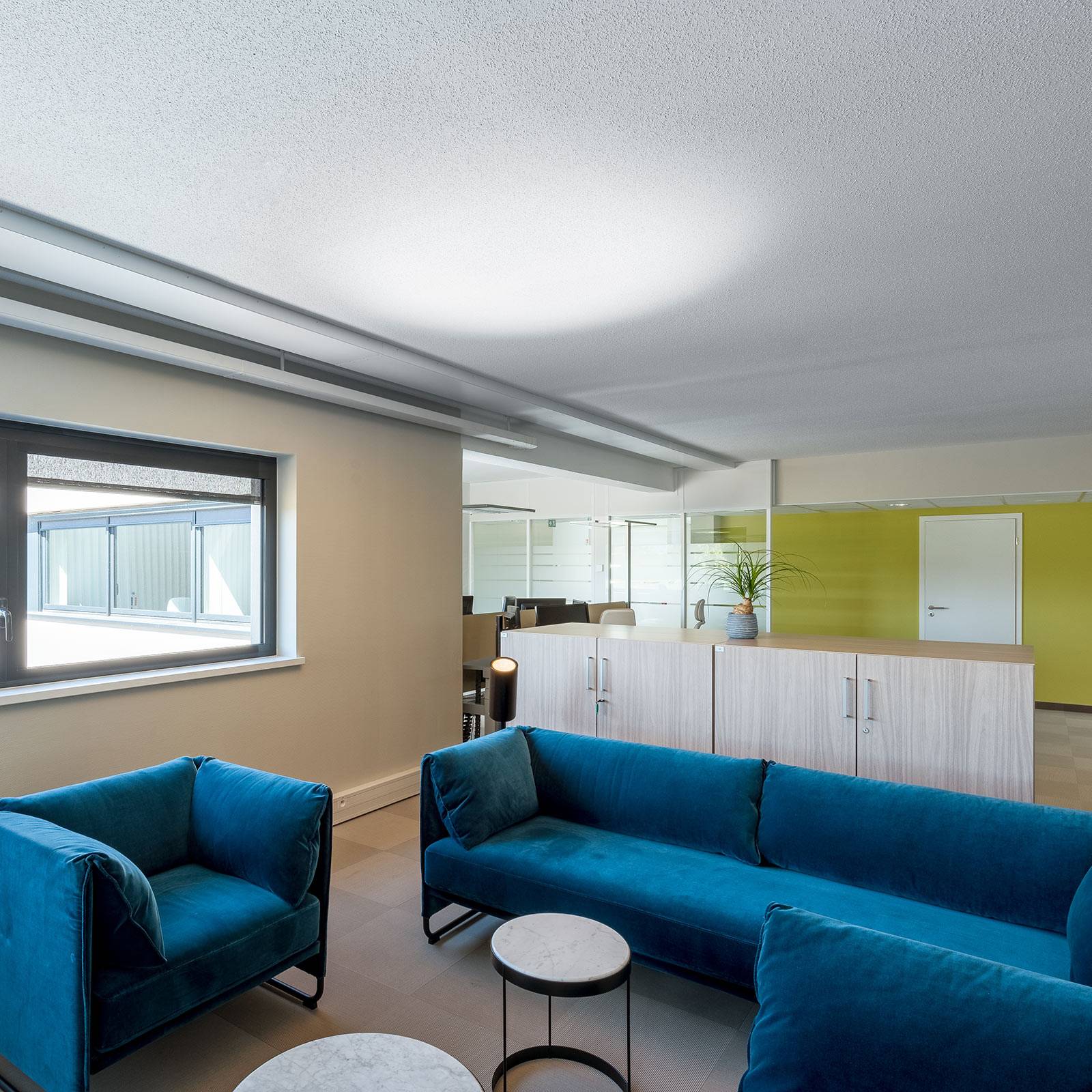 Verblindingsvrije LED plafondlamp Stream Low met hoge lichtopbrengst Stream Low is niet alleen optisch het juiste accessoire voor moderne inrichtingsstijlen, maar voldoet ook functioneel aan alle criteria van een eigentijdse lichtbron. De fabrikant Regent gebruikt een gecertificeerde MINERGIE®-module waarvan het licht naar boven schijnt en een lichteffect creëert alsof een plafondarmatuur de lichtbron is. De draaibare armatuurkop maakt een individuele lichtrichting en een gerichte accentuering van bepaalde ruimtes mogelijk. Stream Low kan worden geschakeld en gedimd (100 is 10 %) via de drukknop op de behuizing. Het licht wordt volledig indirect uitgestraald zonder storende meervoudige schaduwen te creëren. Opmerking: Het bedieningsmechanisme is geïntegreerd in een apparatuurdoos met een magnetische behuizing; de doos kan gemakkelijk worden bevestigd aan de tafelpoot, de standbuis of de kabelhouder van de tafel. – niet-verblindende verlichting zonder meerdere schaduwen – gecertificeerde Regent MINERGIE® module geïntegreerd – inclusief 2 m netaansluitkabel IEC 7/7 Euro veiligheidsstekker – smalle verdeling – digitaal regelbaar (optioneel, bedieningsmodule verkrijgbaar via accessoires) – stand-by vermogen: 0,3 W – verblindingsreductiewaarde UGR: 10 – lichtstroombehoud: L80 (B50) 50.000 h