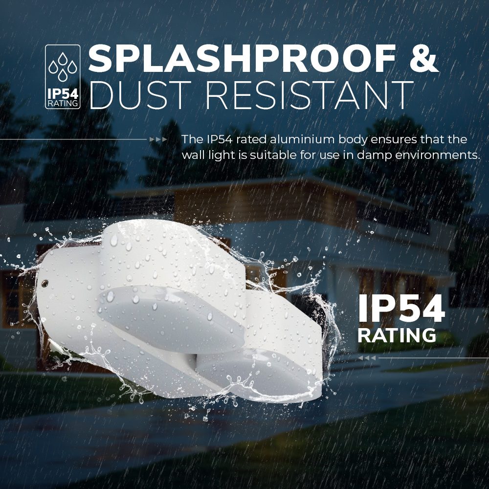 Deze prachtige LED wandlamp is flexibel verstelbare, de twee lampen kun je naar de gewenste richting draaien en eveneens dimmen naar wens. Deze LED wandlamp is uitgevoerd in onderhoudsarm aluminium welke voorzien is van een coating laag hiermee is de lamp bestand tegen zware weersinvloeden en is deze LED wandlamp tevens verwerkelijkt met een IP54 beschermingsklasse, hetgeen betekend dat deze LED wandlamp juist is voor buitengebruik en tevens voor natte binnenruimtes bijv. je badkamer.