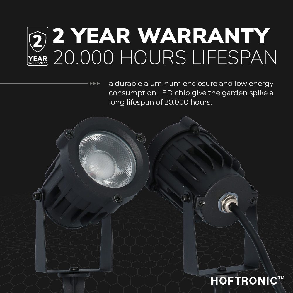Wanneer je op zoek bent naar LED tuinverlichting wil je er uiteraard voor waken dat de LED tuinverlichting tegen een regenbui kan. De Lenzo vijf Watt Set van 6 LED prikspots hebben een IP beschermingsgraad van IP65. Dit wil zeggen dat ze straalwaterdicht zijn. Ze kunnen dus gerust tegen extreme weersomstandigheden.