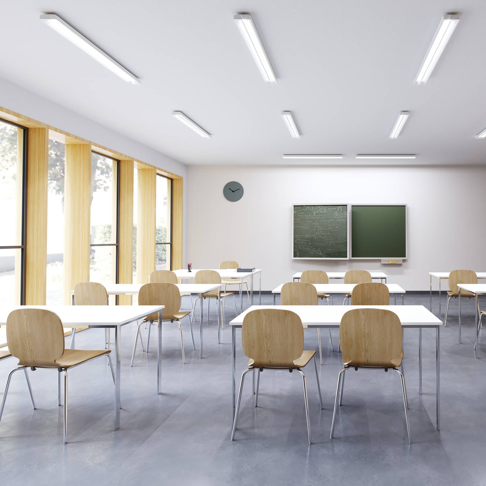 LED-plafondlamp Taris met microrooster en axiale lens De Taris LED plafondverlichting is een ideale lichtbron voor universele verlichting in kantoren en openbare gebouwen. Het kan worden gebruikt in de meest uiteenlopende gebieden, van klassieke kantoren met computerwerkplekken tot onderwijsinstellingen en pauze- of nevenlokalen, en biedt harmonieus licht met een hoog niveau van visueel comfort. De reden voor het aangename licht is het Optical Core System, een combinatie van louvre- en lenstechnologie met omtrekkende, lichtsturende structuren. De Taris LED plafondlamp is niet alleen geschikt voor nieuwe installaties, maar ook als energie-efficiënte vervanging voor conventionele T16/T26 systemen. – Aansluiting: Klem 5-polig – met gestructureerde axiale lens en microraster – symmetrische brede verdeling met UGR 19 in kijkrichting langs en over de armatuur – gemiddelde nominale levensduur 50.000 h L80B50 bij UT = 25 °C