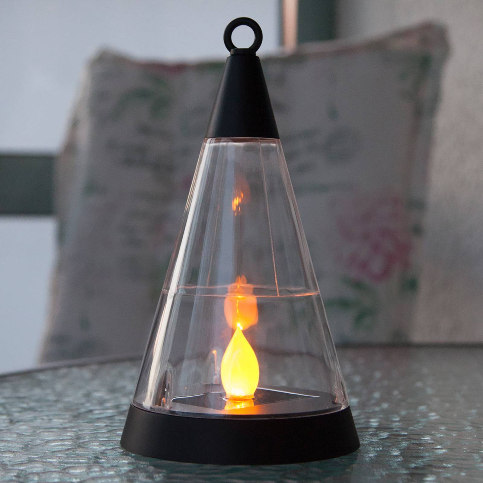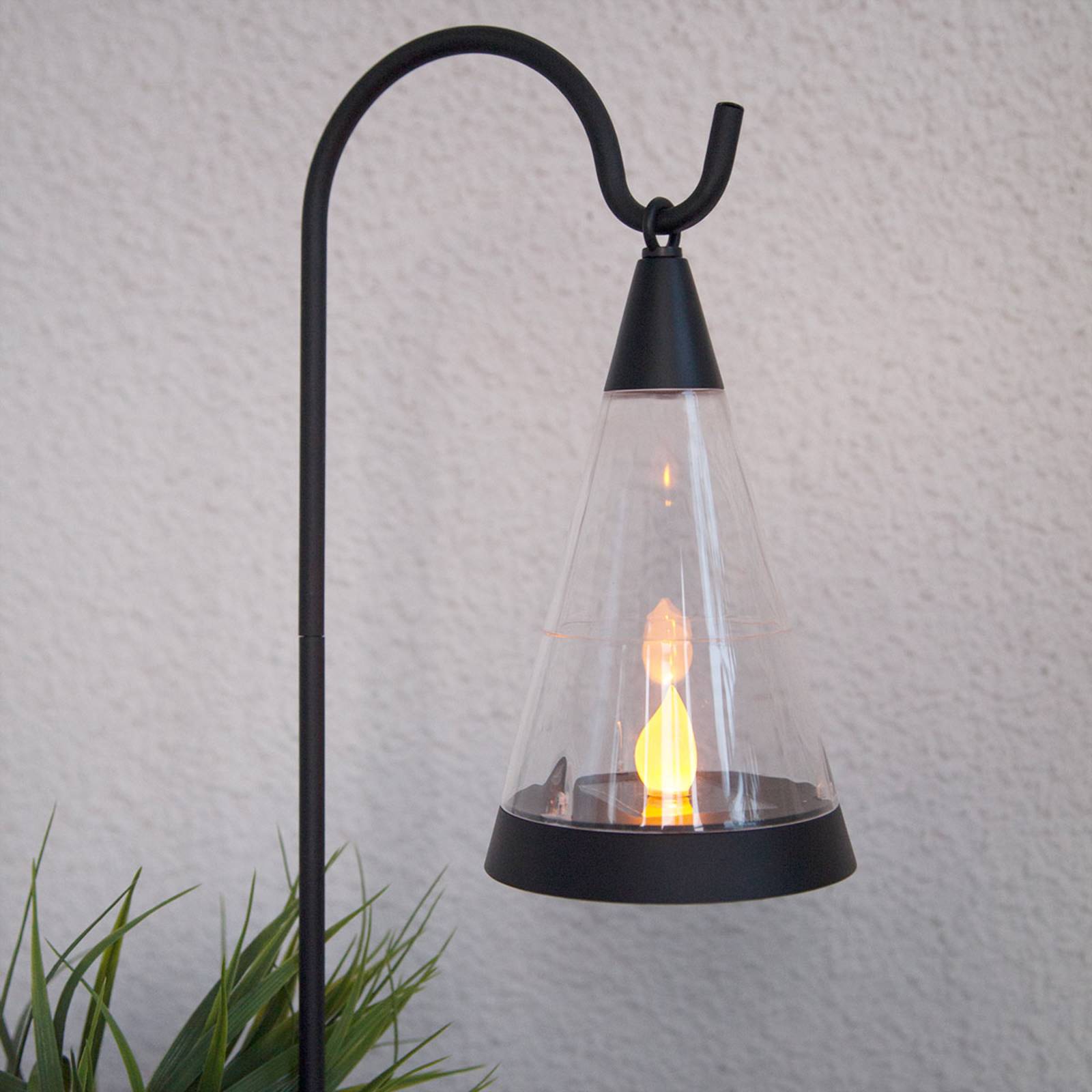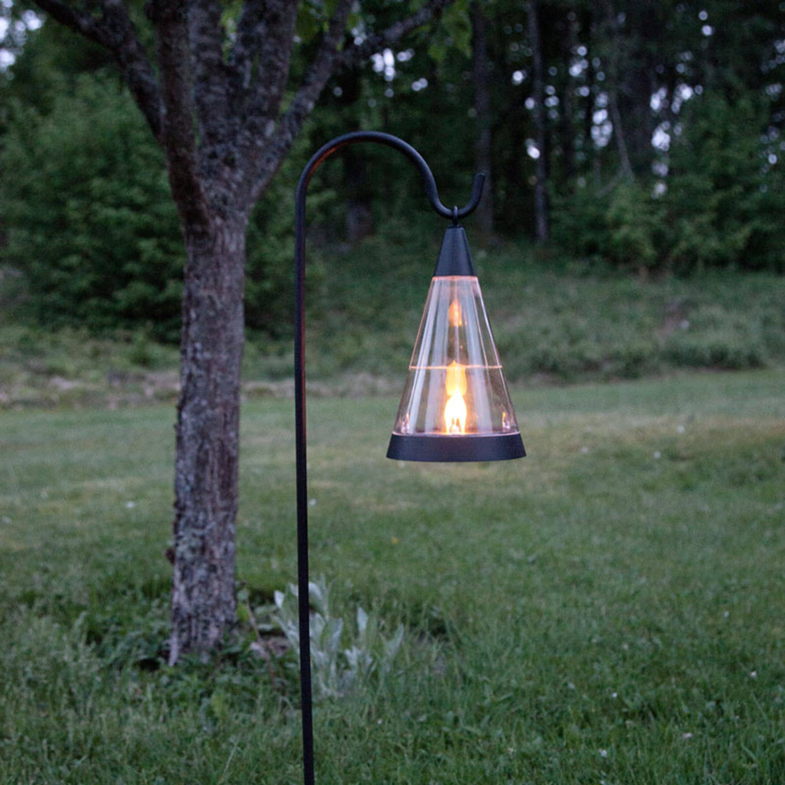 Converteerbare 3-in-1 LED-zonneverlichting Pisa met optionele aardpiek Deze LED-zonneverlichting blijkt een echt allround talent te zijn, want niet alleen hangend aan een touw of aan een haak, maar ook staand op een tafel of door middel van de ingesloten aardpiek kan het Pisa licht gebruikt worden, zodat het de buitenruimte overal sfeervol in scène gezet kan worden. Het moderne, conische design en de amberkleurige LED in de lamp straalt een heerlijke warmte en gezelligheid uit. Wanneer de batterij volledig is opgeladen, bedraagt de verlichtingstijd ongeveer 6 uur. Inclusief schemersensor. – incl. 1 AA NiMH-batterij
