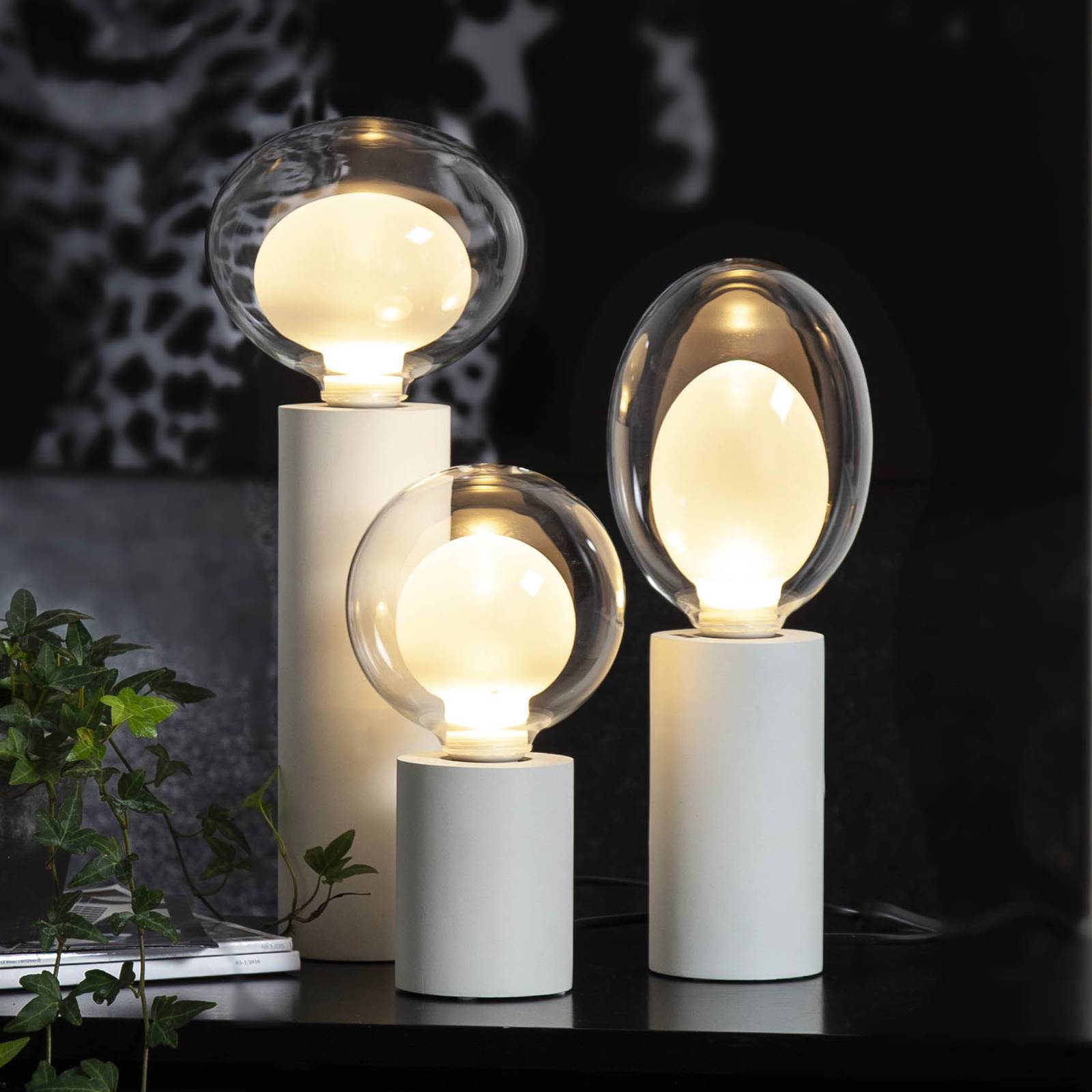 Opaal witte Space LED lamp, E27, 3,5 W, 350 lumen, warm wit 2.700K, 19,7 x 12 cm Dankzij de 3-staps dimfunctie kan de Space LED lamp eenvoudig in drie stappen worden gedimd door de conventionele wandschakelaar te bedienen. De lichtopbrengst varieert van 55 tot 190 tot 350 lumen. – homogene, niet-verblindende lichtverdeling met een aantrekkelijke vorm – opaal binnen, helder glas buiten