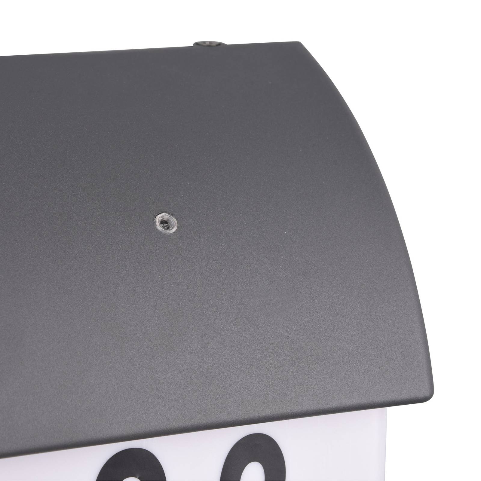 Die Mersey huisnummer lamp maakt indruk met een Modieuze look die op verschillende manieren gecombineerd kan worden. Mersey is uitgerust met een schemersensor en schakelt het licht automatisch aan als het donker wordt en weer automatisch uit zodra het licht wordt. Die kan worden gebruikt als gewone wandlamp, maar ook als huisnummer lamp. Cijfers en letters zijn inbegrepen.