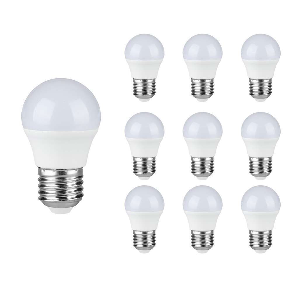 Deze kersverse LED kogellamp G45 is geëffectueerd met de allernieuwste LED lichttechniek. De E27 5.5 Watt led lamp is de energiezuinigste in zijn soort door zijn geringe verbruik en hoge lichtopbrengst van 470 lumen. De 5.5 Watt E27 LED lamp vervangt een traditionele 40 Watt gloeilamp, waarbij mede bij deze LED Lamp de warm witte lichtkleur van 3000K en stralingshoek van 180° identiek zijn. Door de hoge kleurweergave van deze lamp van >80 worden alle kleuren in iedere ruimte kleurecht weergegeven.