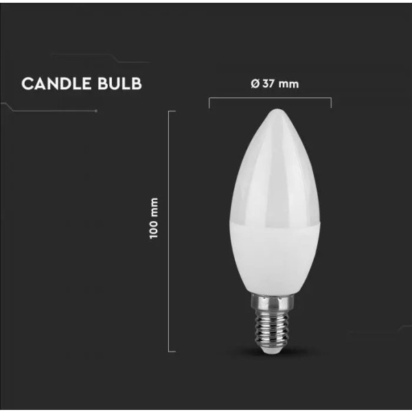 Deze gloednieuwe LED lamp is totstandgekomen met de allernieuwste SMD led chips. De E14 3.7 Watt LED lamp is een van de energiezuinigste in zijn soort door zijn geringe verbruik en hoge lichtopbrengst van 100 lumen per watt. De 3.7 Watt E14 LED lamp vervangt een klassieke 25 Watt gloeilamp, waarbij bovendien bij deze LED Lamp de daglicht witte lichtkleur van 6500K en stralingshoek van 180° identiek zijn. Door de hoge kleurweergave van deze lamp van >80 worden alle kleuren in iedere ruimte kleurecht weergegeven.