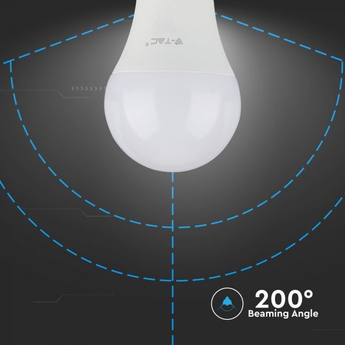 Deze E27 LED Lamp heeft een geld van 11 Watt en een E27-aansluiting wat bovendien wel leuker bekend is als de enorme fitting. De LED Lamp is verwerkelijkt met SMD LED-technologie met een hoge kwaliteit Samsung-chip. De bolvormige LED Lamp heeft een A60-vorm en is ontworpen van thermoplastisch materiaal en een matte lens zodat het licht egaal wordt verspreid. De lichtkleur van deze LED lamp is 6400K, dit is een daglicht witte lichtkleur. De gradenbundel van deze E27 LED lamp is 200° en hiermee identiek aan foutloze halogeenlampen. De lichtopbrengst van 1055 lumen waakt ervoor dat deze 11 Watt LED Lamp het geld van een 75 Watt gloeilamp of halogeenlamp vervangt.