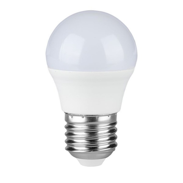 Deze nieuwe LED kogellamp G45 is geëffectueerd met de allernieuwste LED lichttechniek. De E27 5.5 Watt led lamp is de energiezuinigste in zijn soort door zijn geringe verbruik en hoge lichtopbrengst van 470 lumen. De 5.5 Watt E27 LED lamp vervangt een klassieke 40 Watt gloeilamp, waarbij ook bij deze LED Lamp de warm witte lichtkleur van 3000K en stralingshoek van 180° identiek zijn. Door de hoge kleurweergave van deze lamp van >80 worden alle kleuren in iedere ruimte kleurecht weergegeven.