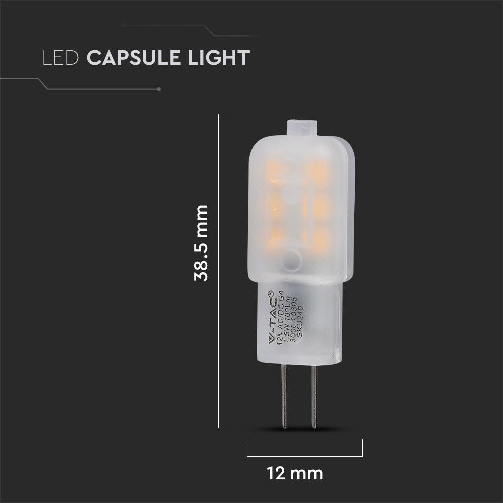 De steeklamp is betrouwbaar voor alle verlichting met een G4 fitting. De G4 LED capsule heeft een verbruik van slechts 1.5 Watt en schijnt hiermee 100 Lumen. De LED lamp schijnt een warm witte 3000K lichtkleur en is hierdoor zeer prima in gemoedelijke en decoratieve verlichting. De sfeerverlichting gaat maar liefst 30.000 branduren mee, hierdoor heb je jarenlang genot van je G4 verlichting. De G4 verlichting heeft een 300° stralingshoek, door middel van het gebruik van meerdere steeklampjes verlicht je moeiteloos en gezellig een ruimte in bijv. je woonkamer, slaapkamer of gang.