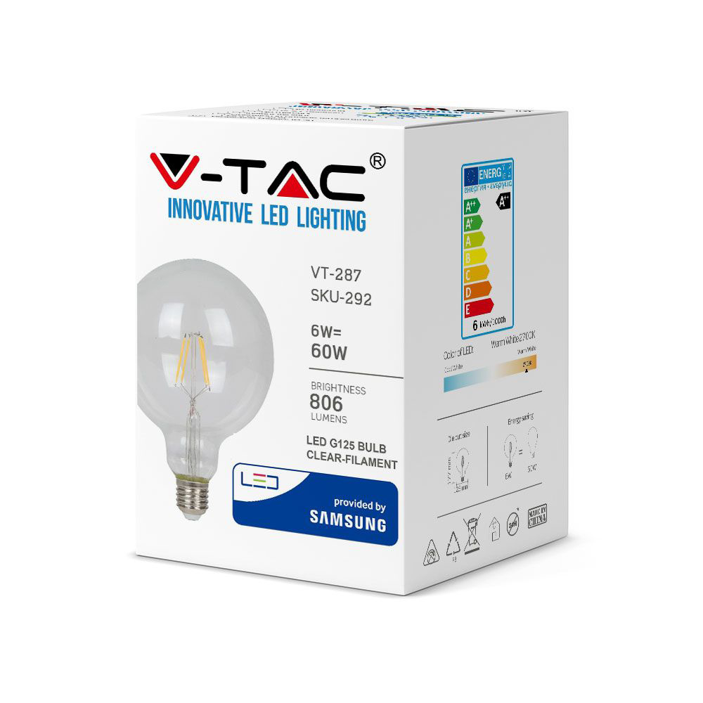 V-TAC LED Filament lamp 6 Watt E27 2700K Samsung