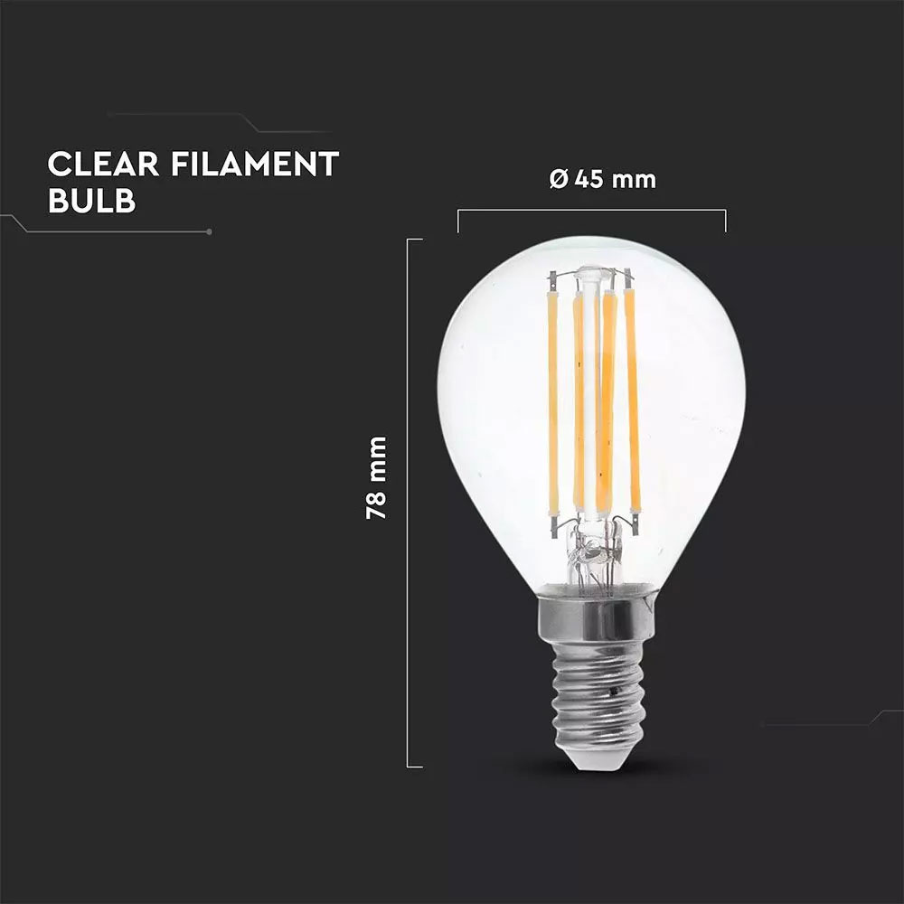 V-TAC LED Filament lamp E14 fitting 6 Watt 800lm P45 extra warm wit 2700K