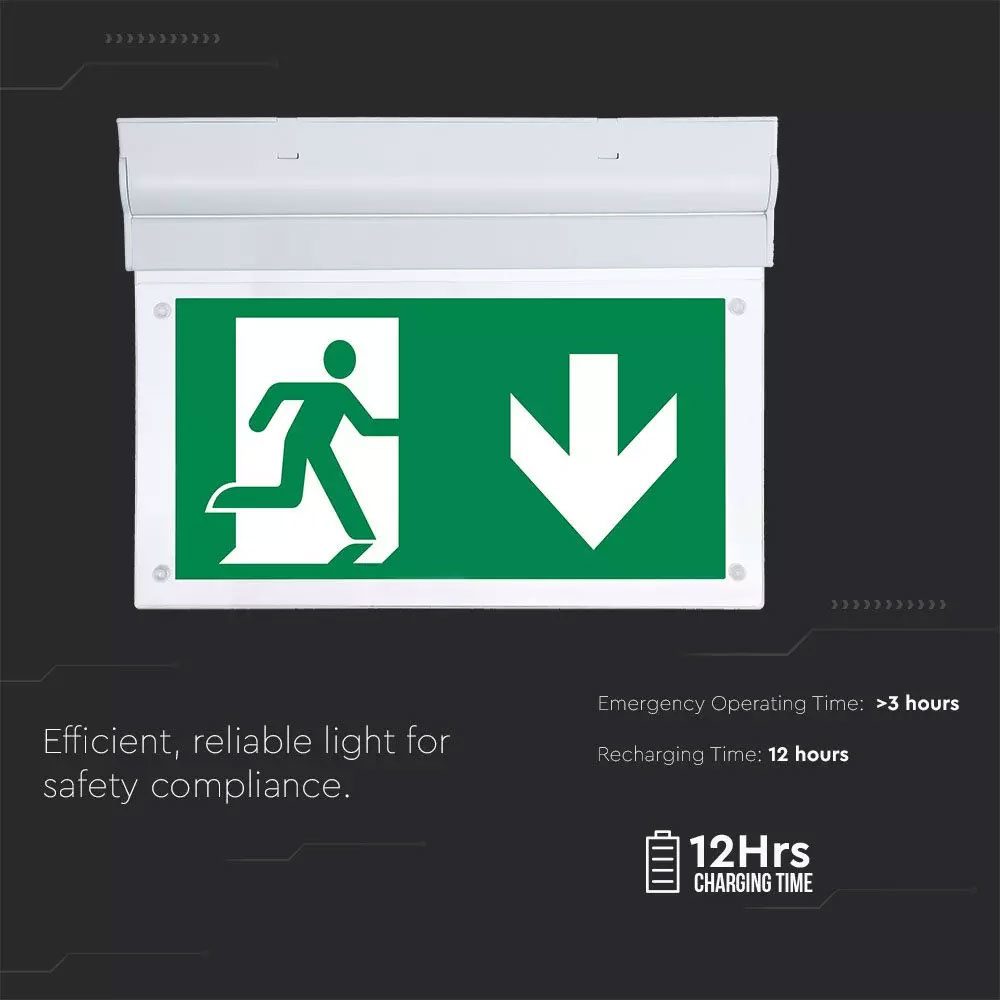 Met een zichtafstand van maar liefst 24 meter van beide kanten, is deze noodverlichting inbegrepen pictogram ideaal voor parkeergarages, clubs, fabriekshallen, kelders maar ook theaters! Deze LED noodlamp heeft een lichtkleur van 6000K daglicht wit, waardoor de verlichting helder is te zien. Met een IP-waarde van IP20 is deze lamp alleen juist voor droge ruimtes. De lamp onderscheidt zich door het enorm lage verbruik van slechts 2 Watt. Dit maakt de lamp energiezuinig en ideaal voor elke noodsituatie. De noodlamp is gefabriceerd van Polycarbonaat wat de noodlamp niet alleen efficiënt maakt, maar ook zeer onderhoudsvriendelijk.