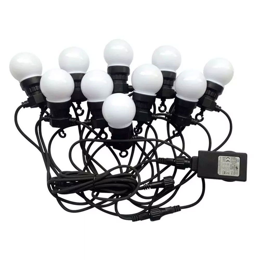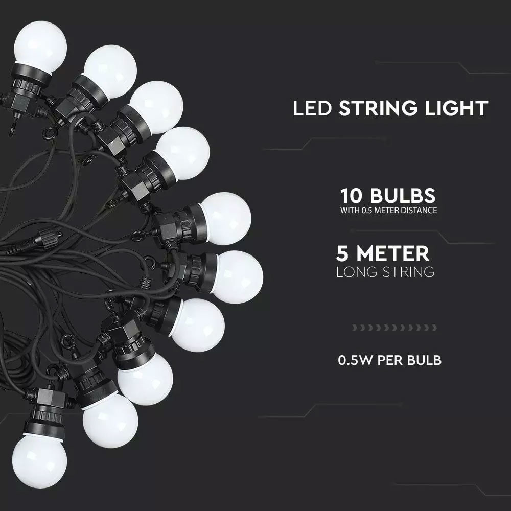 LED 5 meter String Light met 10 Milky Bulbs met een 3000K lichtkleur – IP44 bruikbaar voor buitengebruik en koppelbaar tot 50 prikkabels