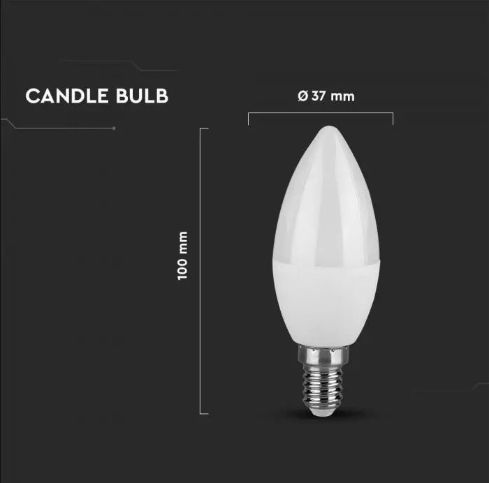 Deze gloednieuwe LED lamp is totstandgekomen met de allernieuwste SMD led chips. De E14 3.7 Watt LED lamp is een van de energiezuinigste in zijn soort door zijn geringe verbruik en hoge lichtopbrengst van 100 lumen per watt. De 3.7 Watt E14 LED lamp vervangt een traditionele 25 Watt gloeilamp, waarbij ook bij deze LED Lamp de daglicht witte lichtkleur van 6500K en stralingshoek van 180° identiek zijn. Door de hoge kleurweergave van deze lamp van >80 worden alle kleuren in iedere ruimte kleurecht weergegeven.