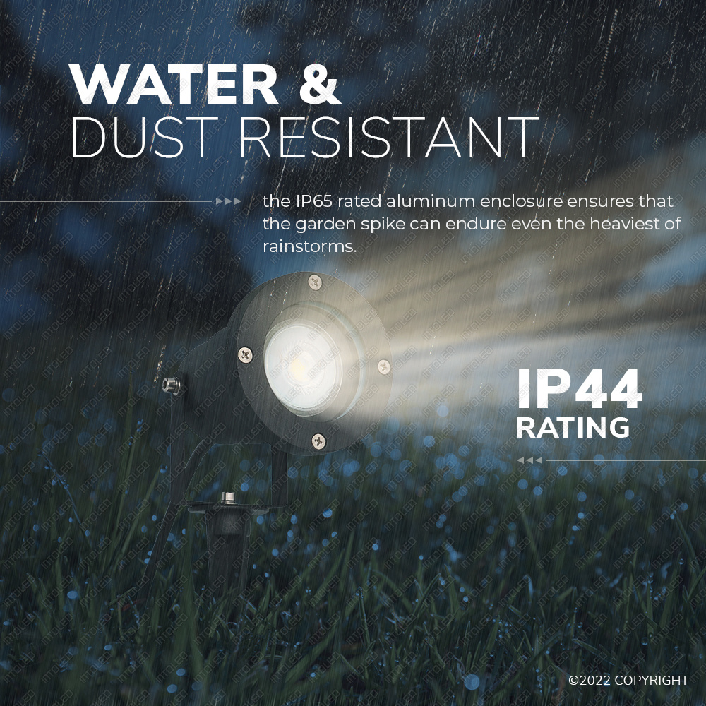 De prikspot is algeheel IP44 water- en stofdicht. Hierdoor kun je deze gerust het hele jaar buiten laten hangen, afgezien van dat je je druk hoeft te maken over eventuele defecten door regen, sneeuw en ijzel. De tuinspot is dus bestand tegen menig weersomstandigheden.