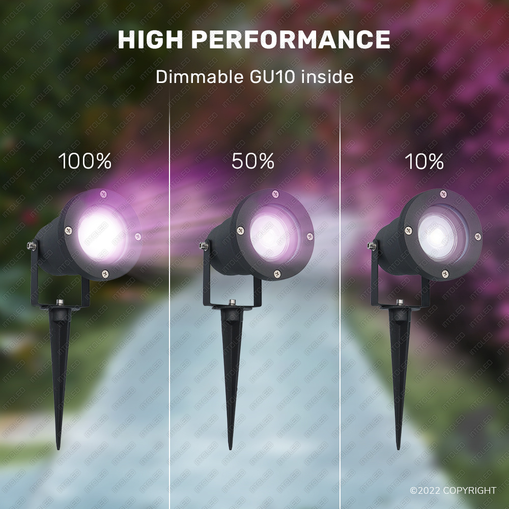 Om ervoor te zorgen dat de prikspot er jarenlang als nieuw uit blijft zien is de prikspot afgewerkt met een onderhoudsvrije aluminium Dit grondig materiaal is zowel vochtbestendig als UV-bestendig. Hierdoor zal de tuinspot niet verkleuren door zonlicht en de verf niet afbladderen bij lange blootstelling aan nattigheid. Hierdoor ervaar je jarenlang plezier van je tuinverlichting