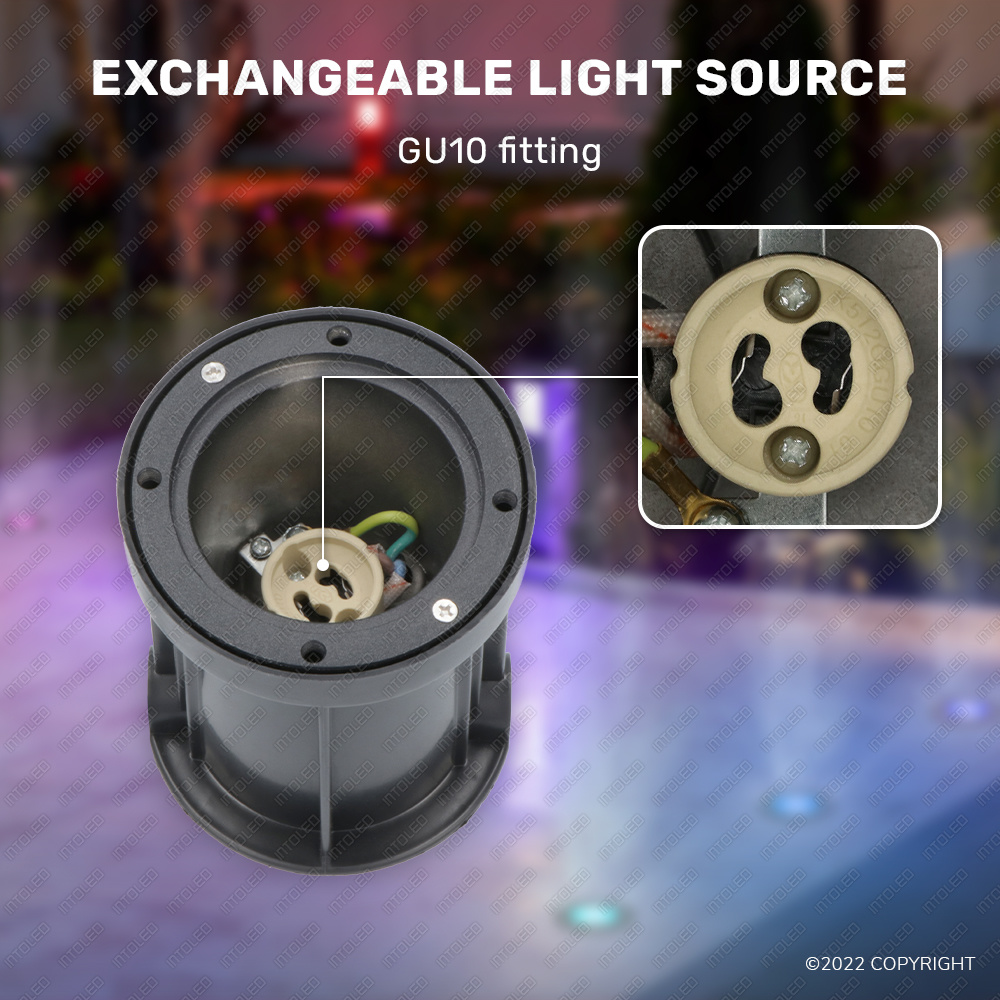 Heb je weinig ervaring met het installeren van verlichting of grondspots? Dan hoef je je geen zorgen te maken: de montage is heel comfortabel. De spot is al voorzien van een GU10 fitting en is reeds aangesloten op een kabel van 30 cm lang. De spot zelf heeft een formaat van Ø120xØ90x110mm.