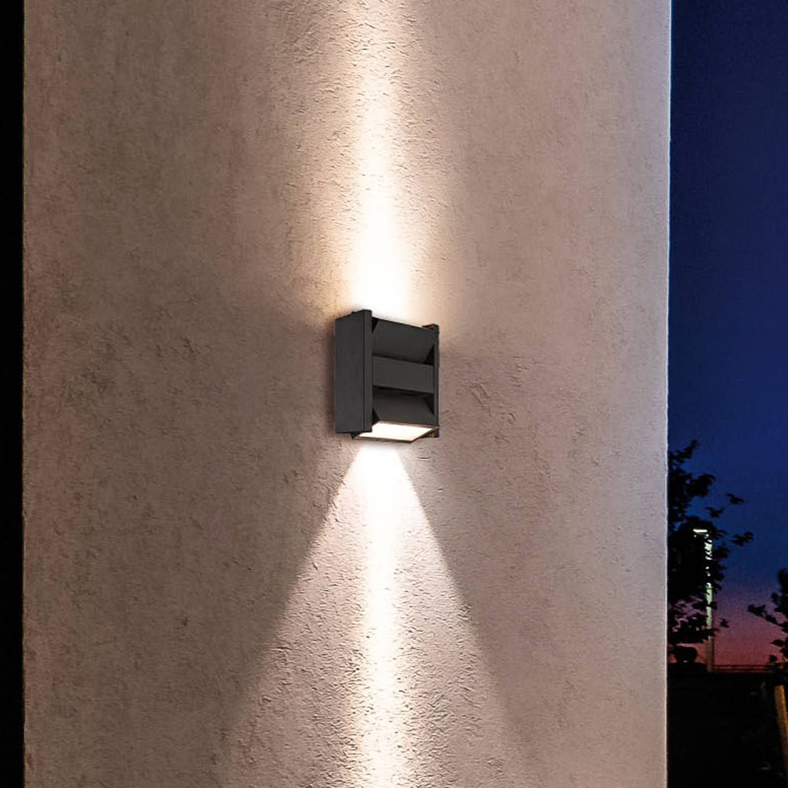 De Delos LED buitenwandlamp is een lichtbron voor gevels die homogeen, niet-verblindend licht geeft en ook een modern decoratief element is. – met twee verstelbare lichtelementen